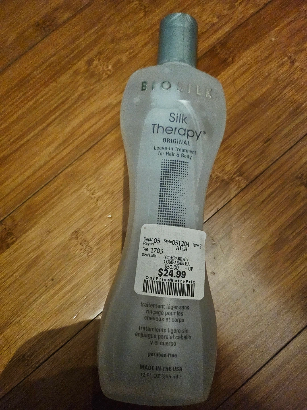 BIOLIST Silk Therapy Original Leave-In Treatment for Hair & Body. It's a paraben-free formula. Made in the USA, this bottle contains 12 FL OZ (355 mL).