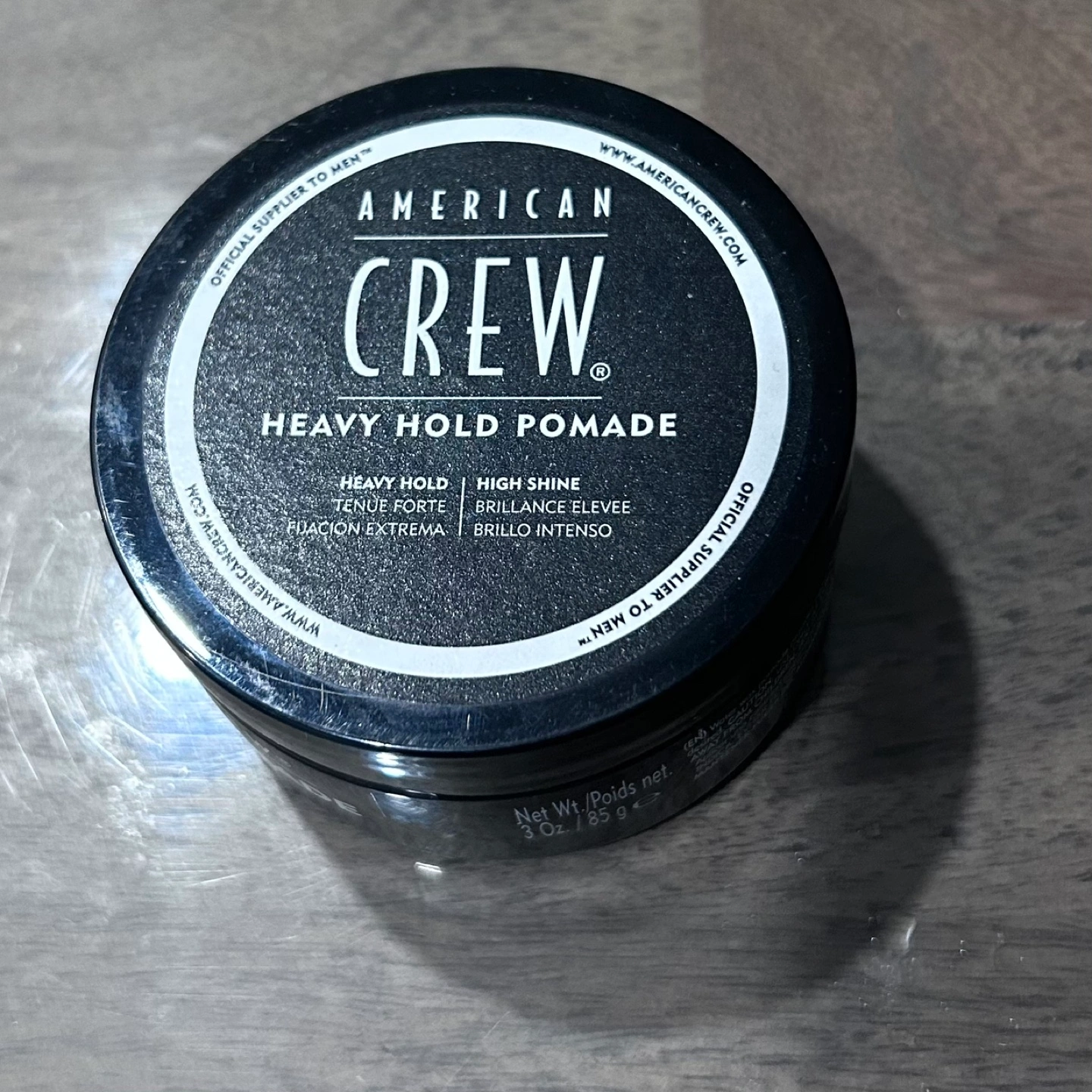 New 3 oz jar of American Crew Heavy Hold Pomade. Provides a strong hold and high shine.