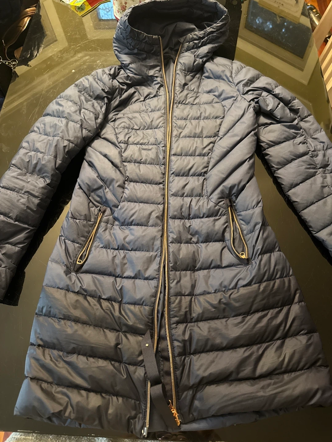A Lululemon puffer jacket in great condition. It's a size 6 and features a hood for extra warmth. Perfect for those chilly Canadian days!