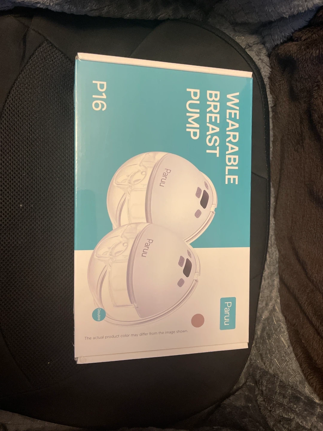 This is a wearable breast pump from Paruu. It's a double pump set. The pump is designed to be worn inside a bra.