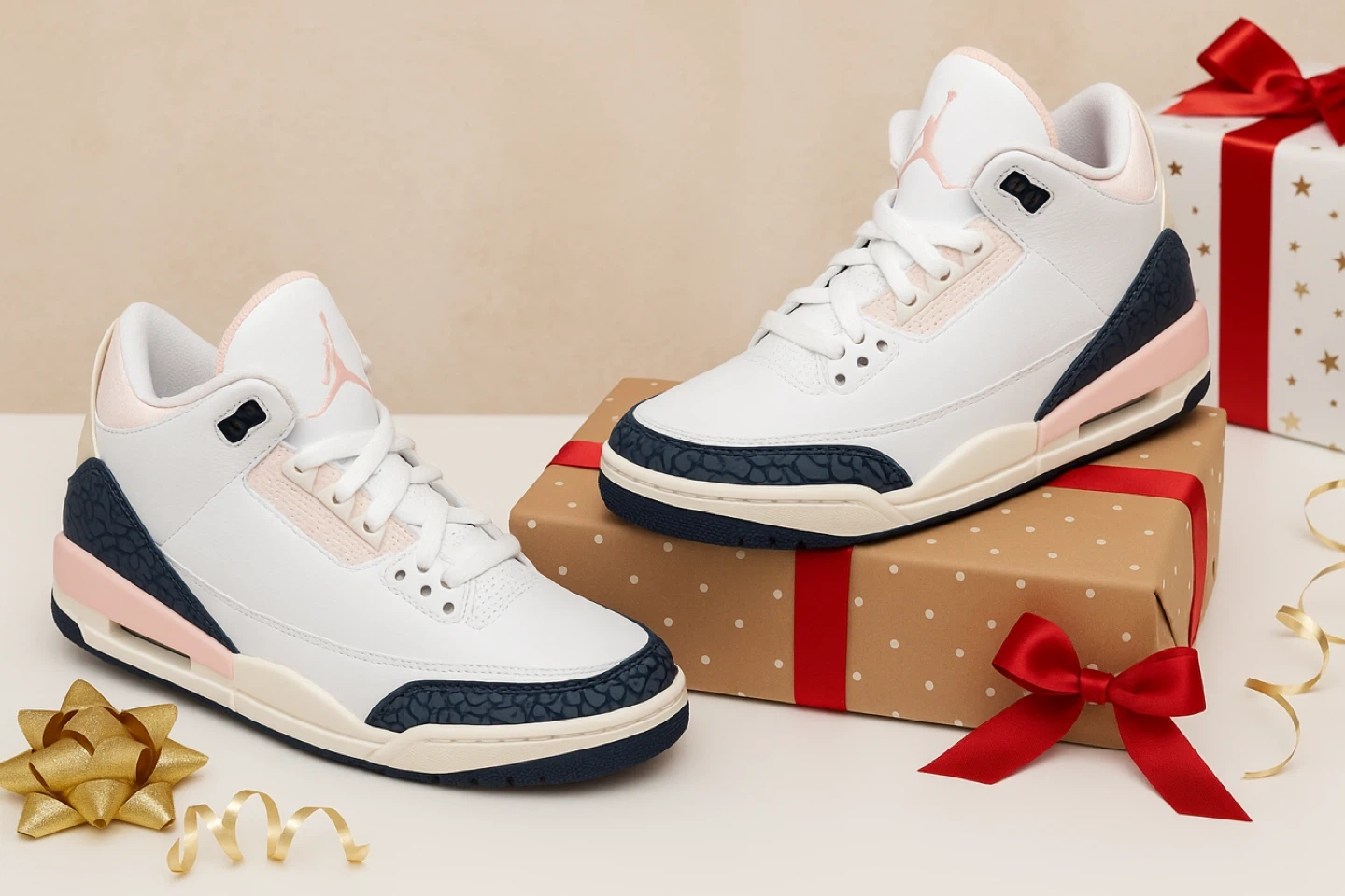 Air Jordan 3 Retro SP come with the original box! Elegant white sneakers with grey textured details and soft pink accents, crafted for refined style and all-day comfort. A perfect blend of modern luxury and timeless design.