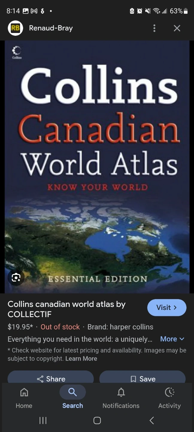 This is the Collins Canadian World Atlas, Essential Edition. It provides comprehensive global coverage. It's a great reference for understanding the world!