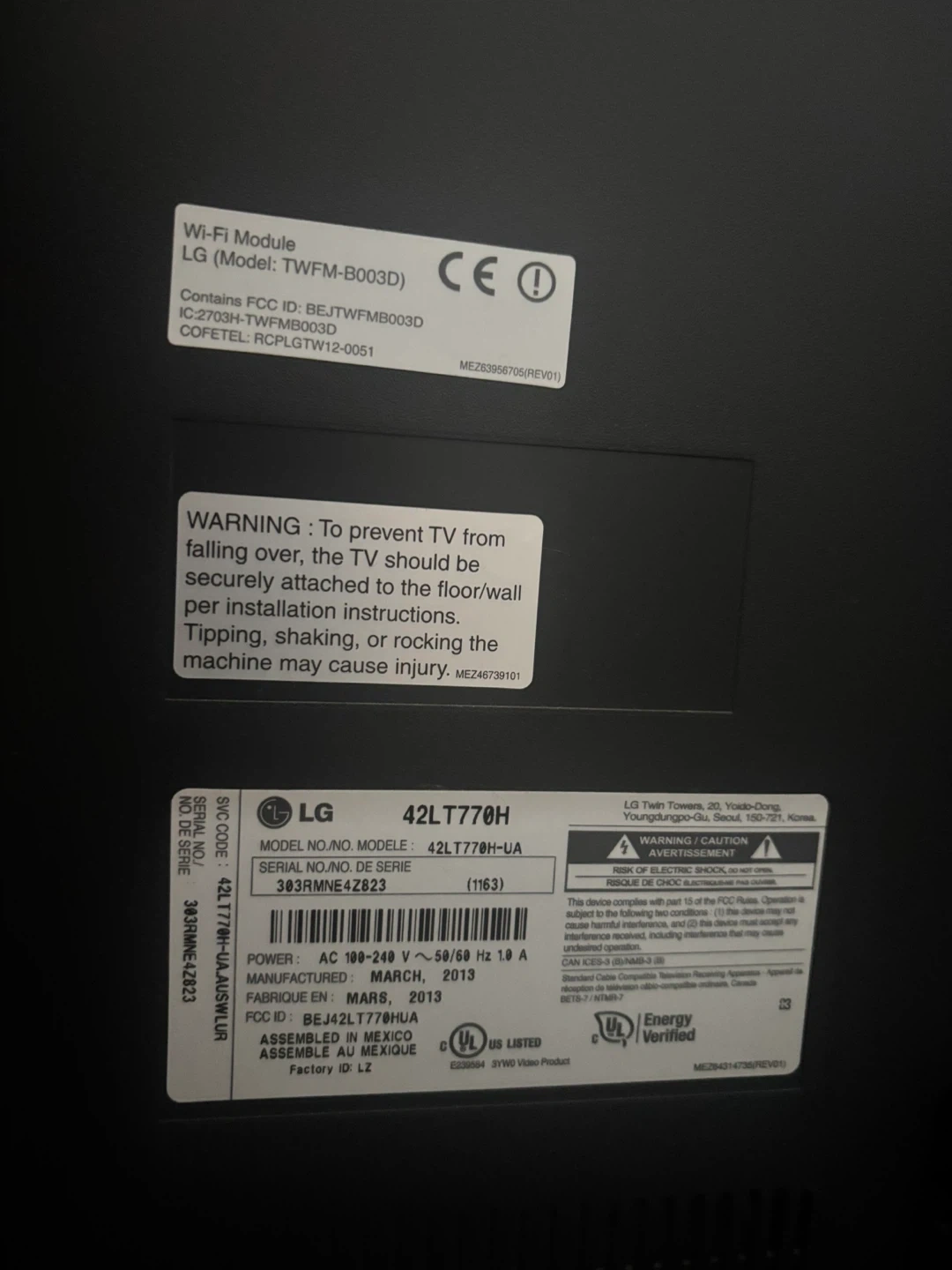Model number: lg42lt770h