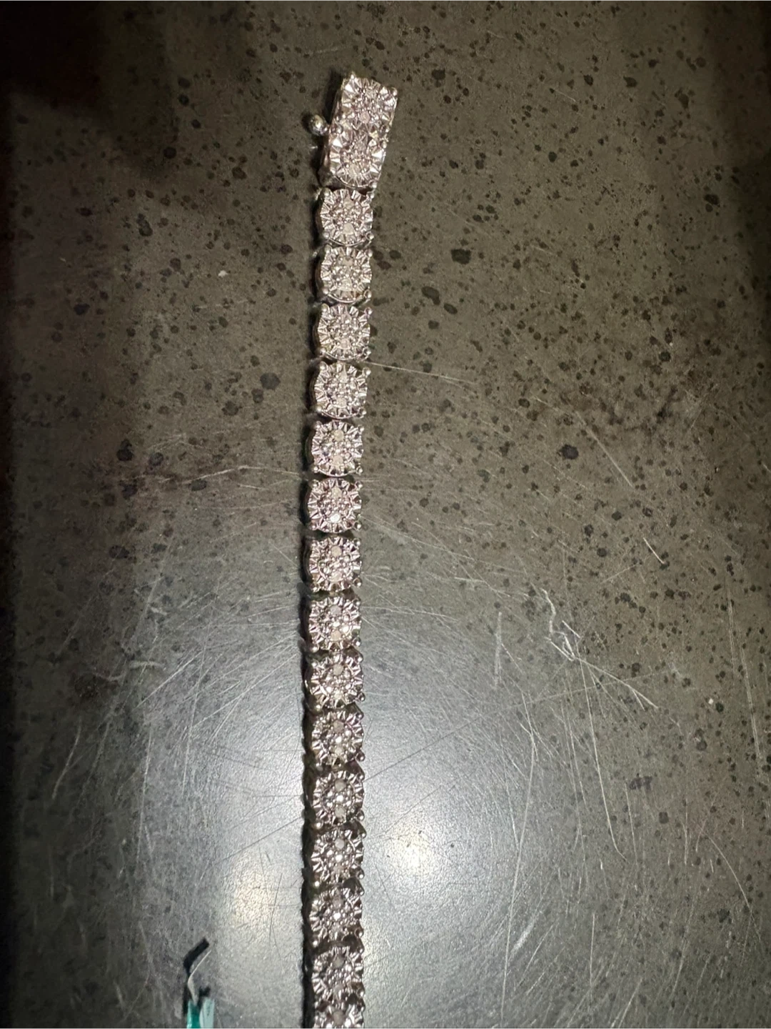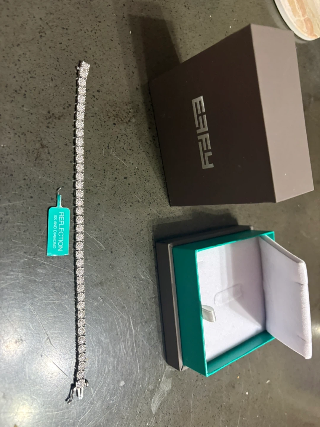 This EFFY tennis bracelet is adorned with diamonds. It comes with its original box. It's a lovely accessory for any occasion! Sterling silver