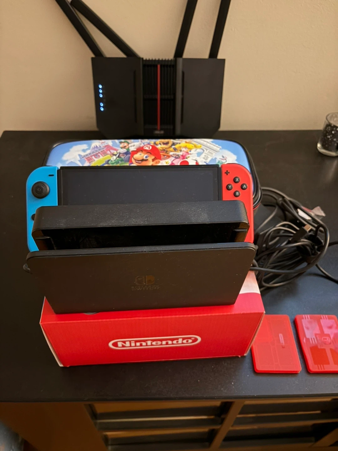 Hardly used, Bought last year. Comes with all accessories that came with the switch originally and the $45 Mario case. Accessories included are the cables, the console holder for the tv, the joycons, the controller. Price is very firm and only contact if you’re serious. Definitely No Trades