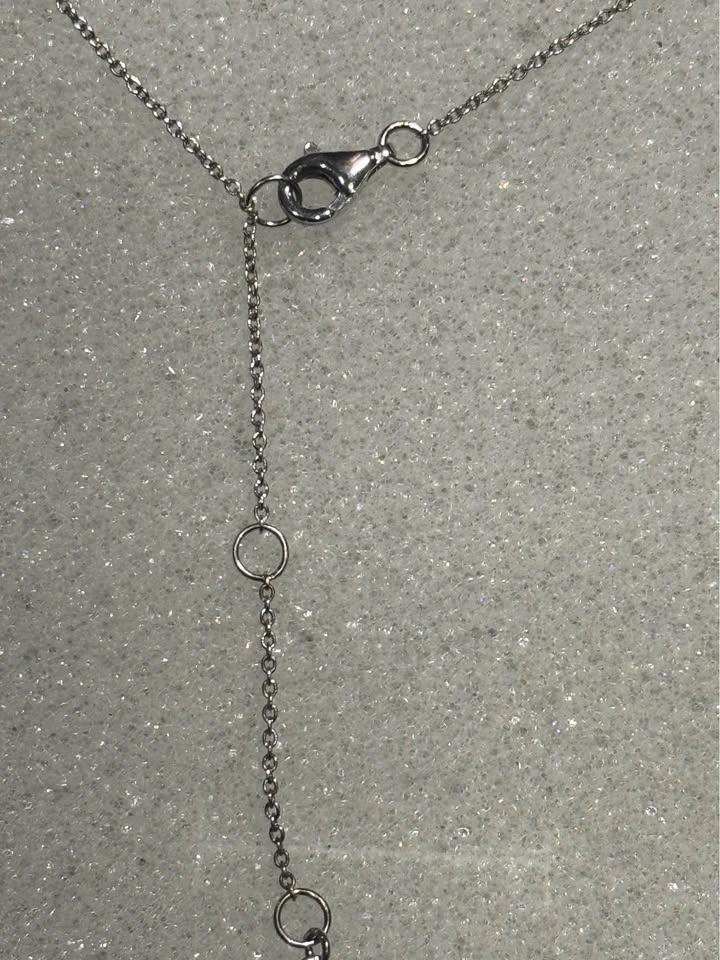 Stylish necklace with a delicate silver chain. Has a cool pendant with two interlocking gold-tone circles. Chain is sterling silver (925 mark). Adjustable length too. Does not come in a box. There is a gift with purchase ☺️