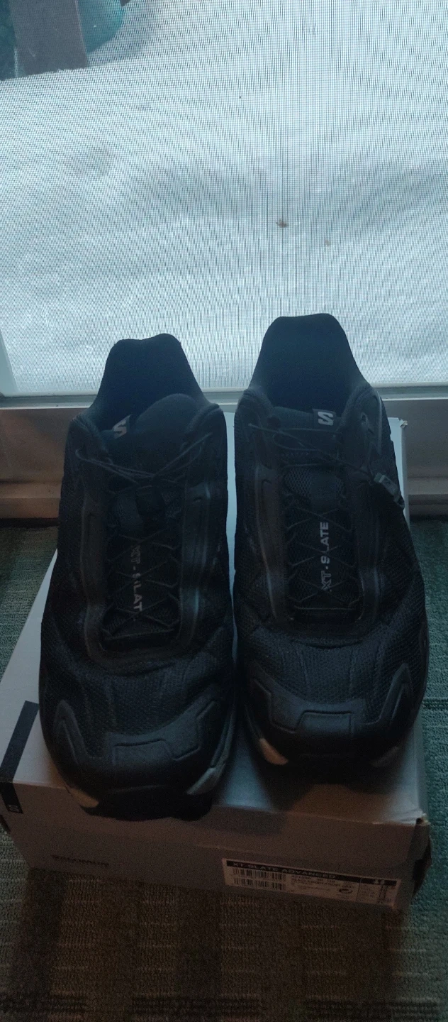 Salomon XT-SLATE trail running shoes in black. These shoes are designed for performance on varied terrain. They feature a durable outsole for excellent grip.