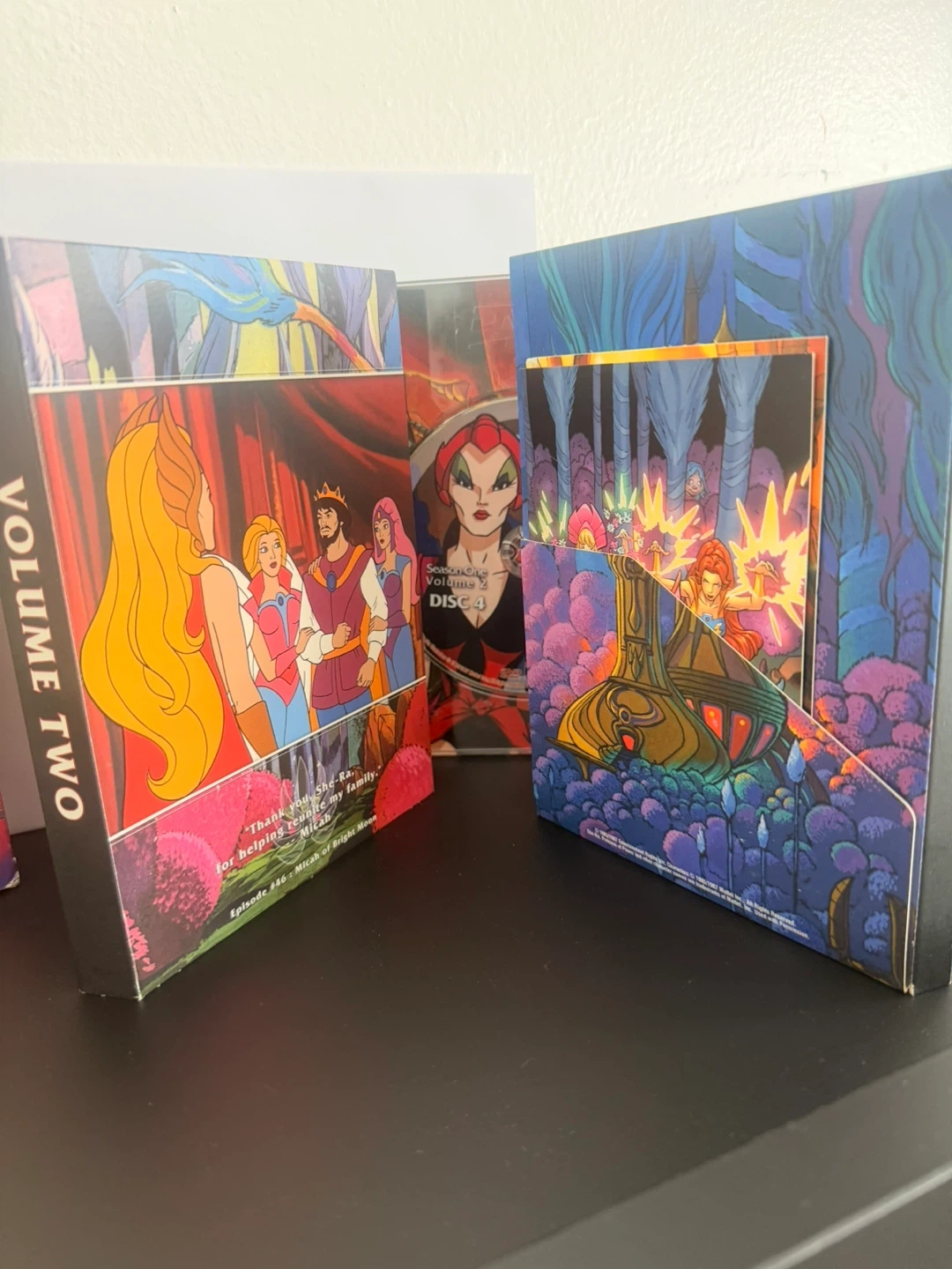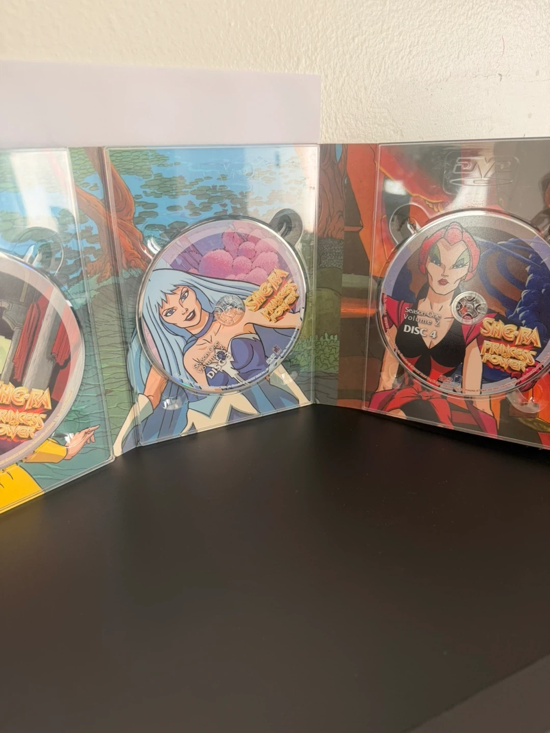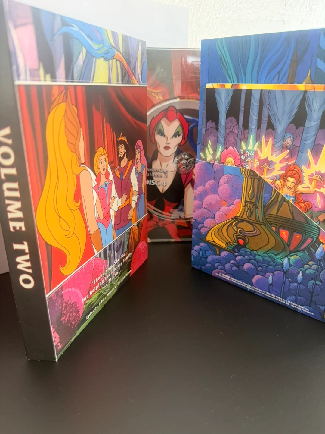 This DVD set includes She-Ra Princess of Power Season One Vol 1. It's a complete season collection of the classic animated series. Features multiple discs with bonus content.