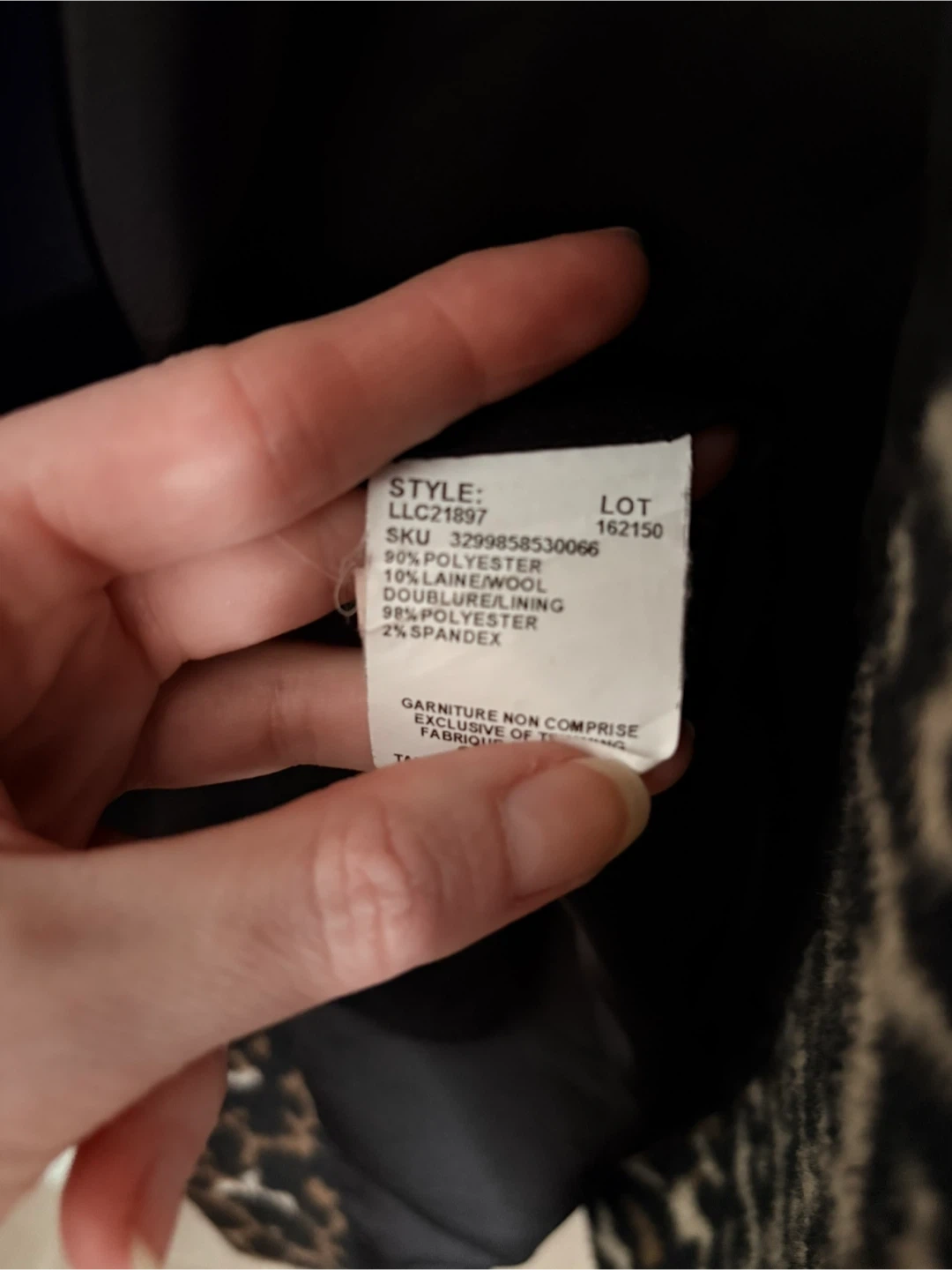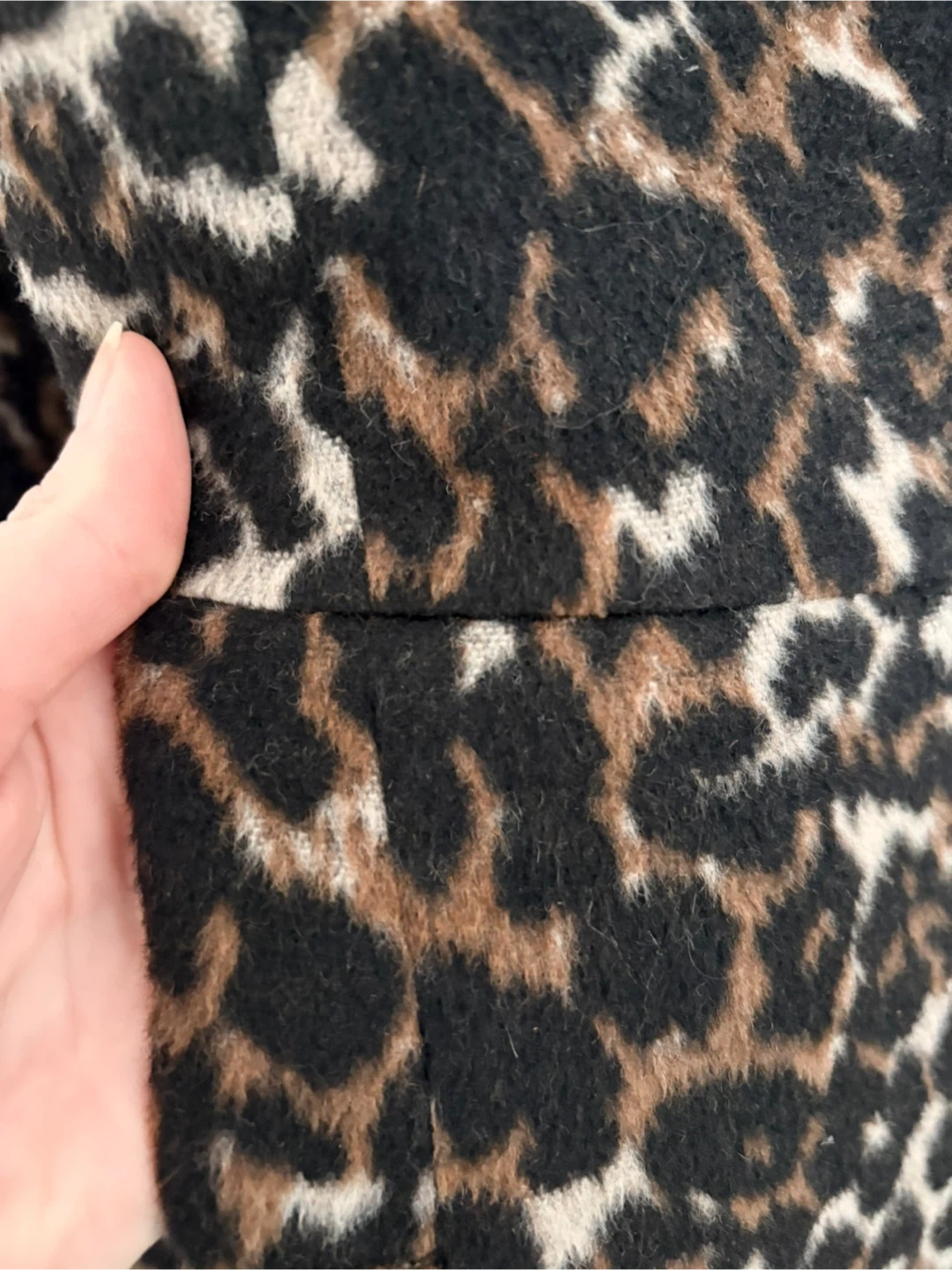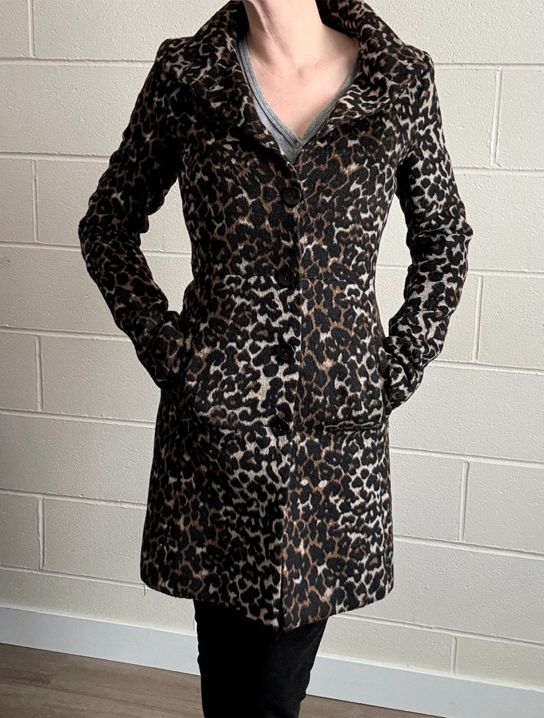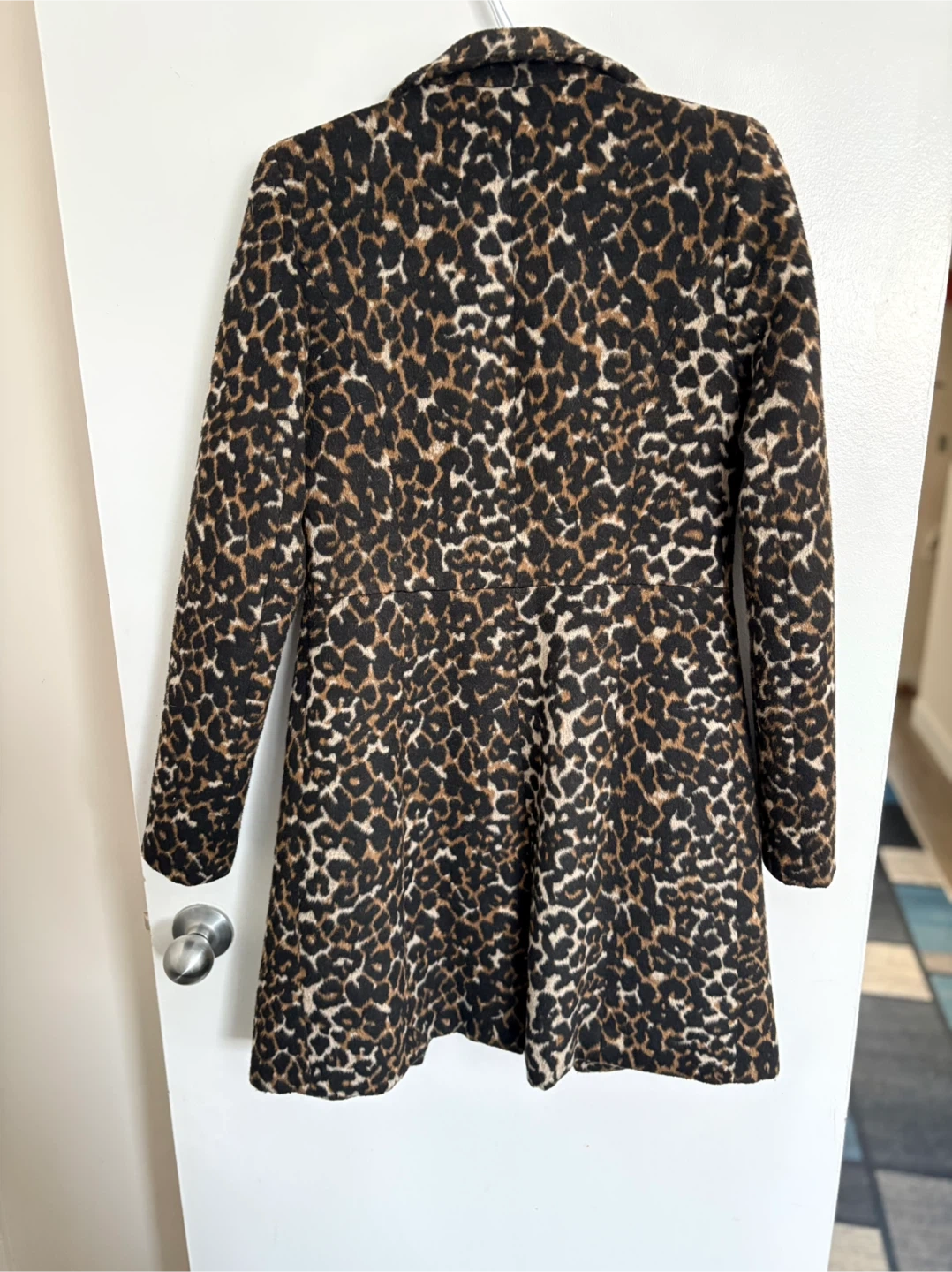 Le Chateau coat featuring a stylish leopard print pattern! Perfect for adding a touch of flair to your wardrobe.