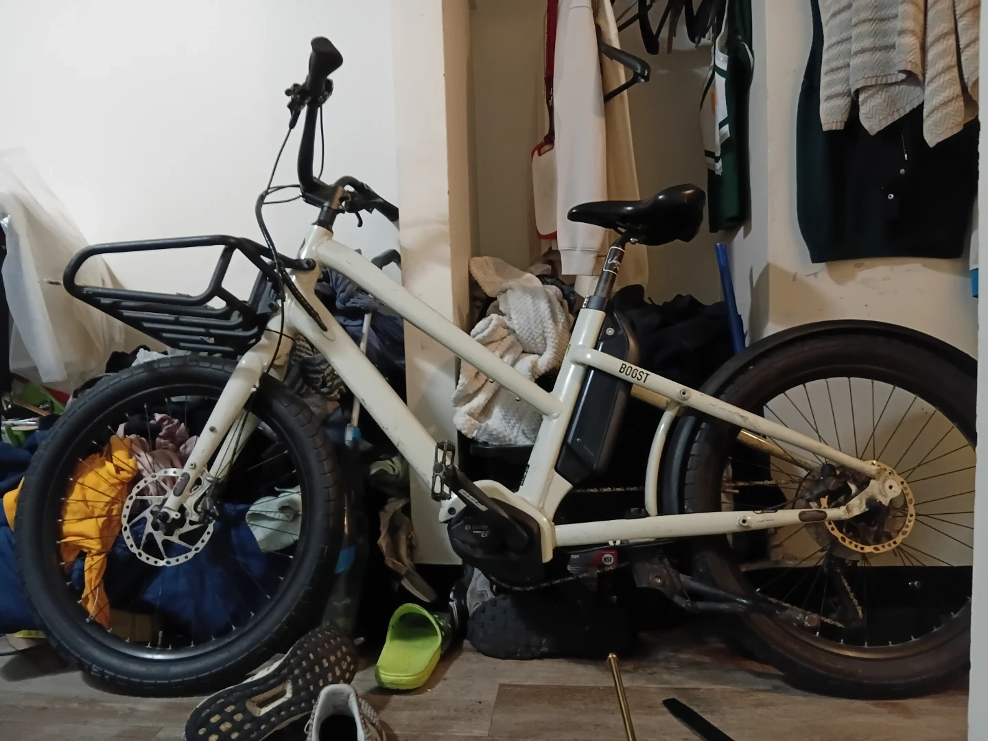 Benno boost cargo e bike with a bosch performance lines cx and a Bosh power pack also two rags , one of the front one on the back and a holding cage for kids