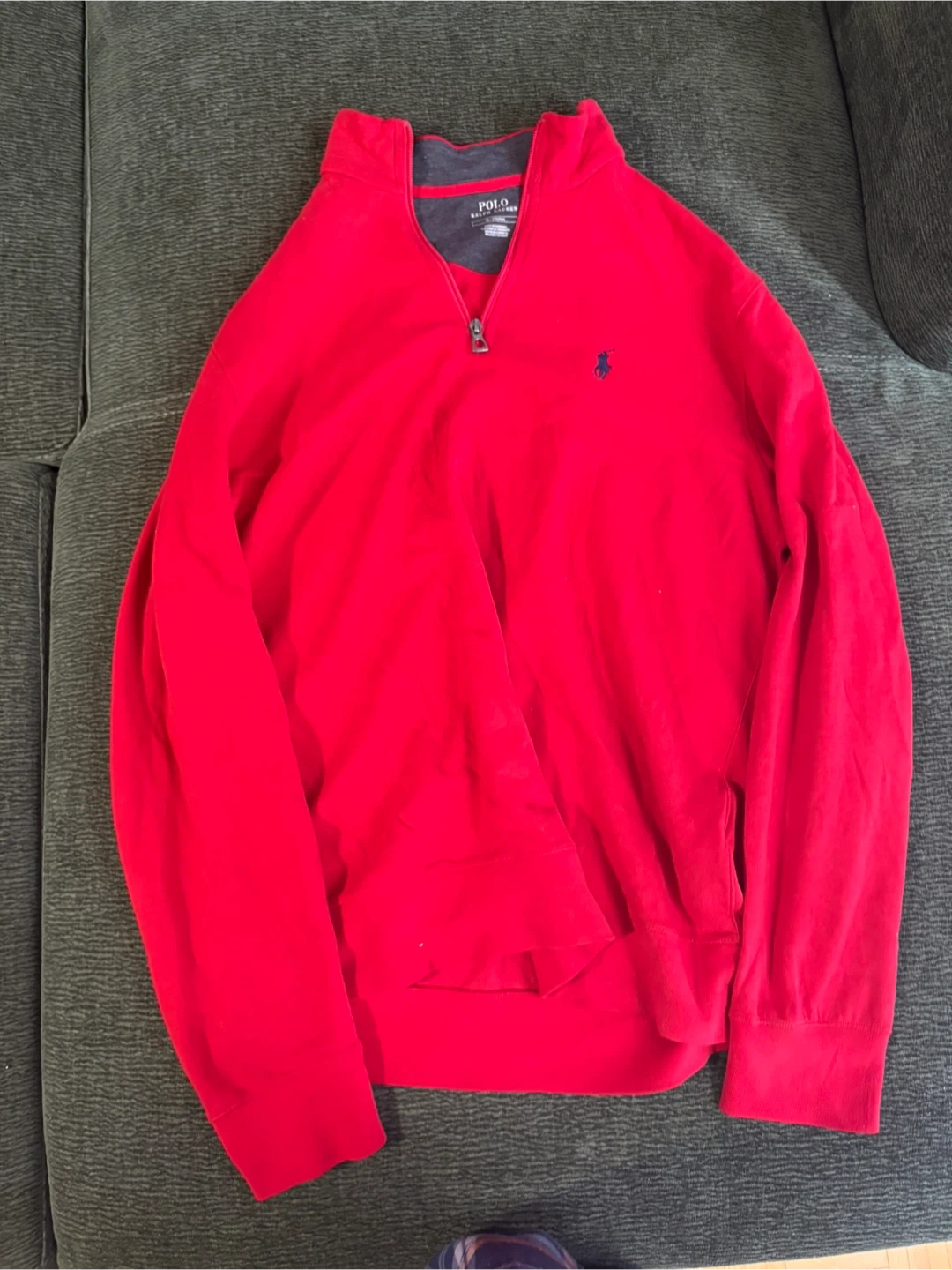 Polo Ralph Lauren quarter zip sweater in red. It's a size medium