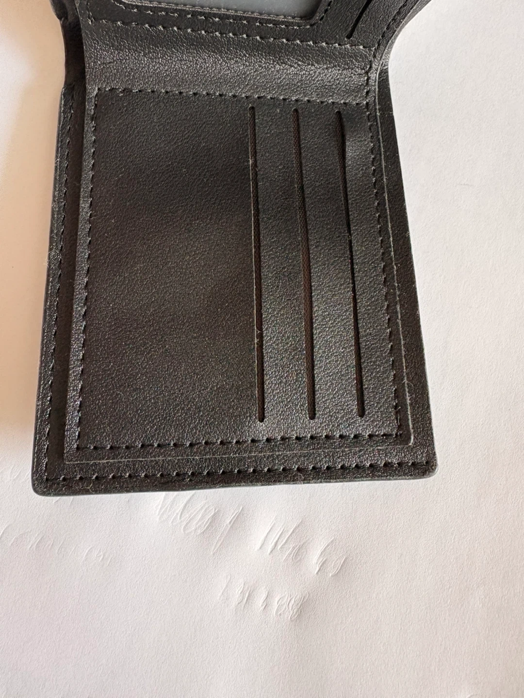 JIANGBAO bifold wallet in black. It has multiple card slots and a clear ID window. Leather-like material.