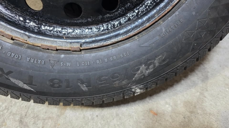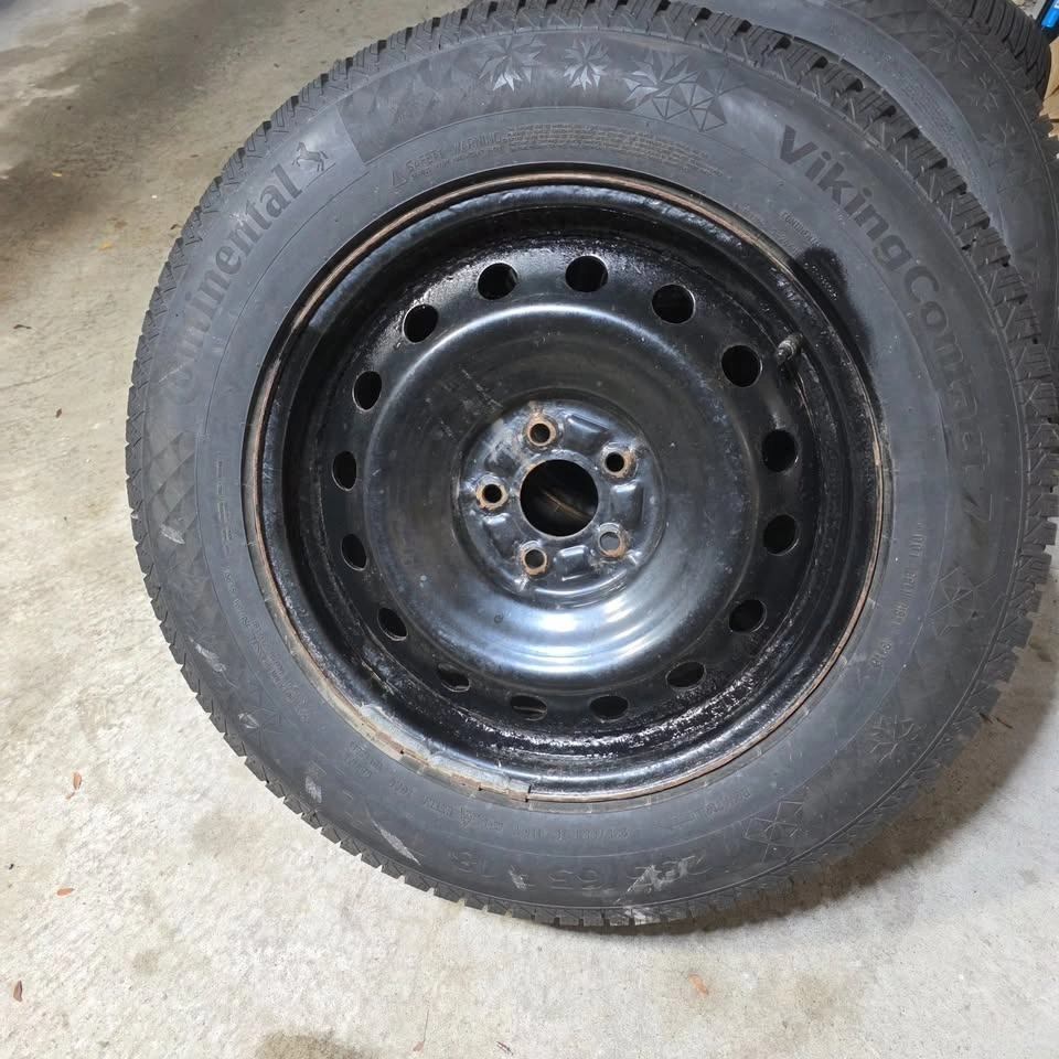 Selling four 18-inch winter tires with steel rims. Two tires have 90% tread remaining, and the other two have 80%. Tire size is 235/65/18, which is similar to 245/60/18 and 255/60/18. The rim bolt pattern is 5x114.3. These may fit some Toyota Highlanders, Venzas, Lexus RX350s, or other cars. Please verify fitment for your vehicle.