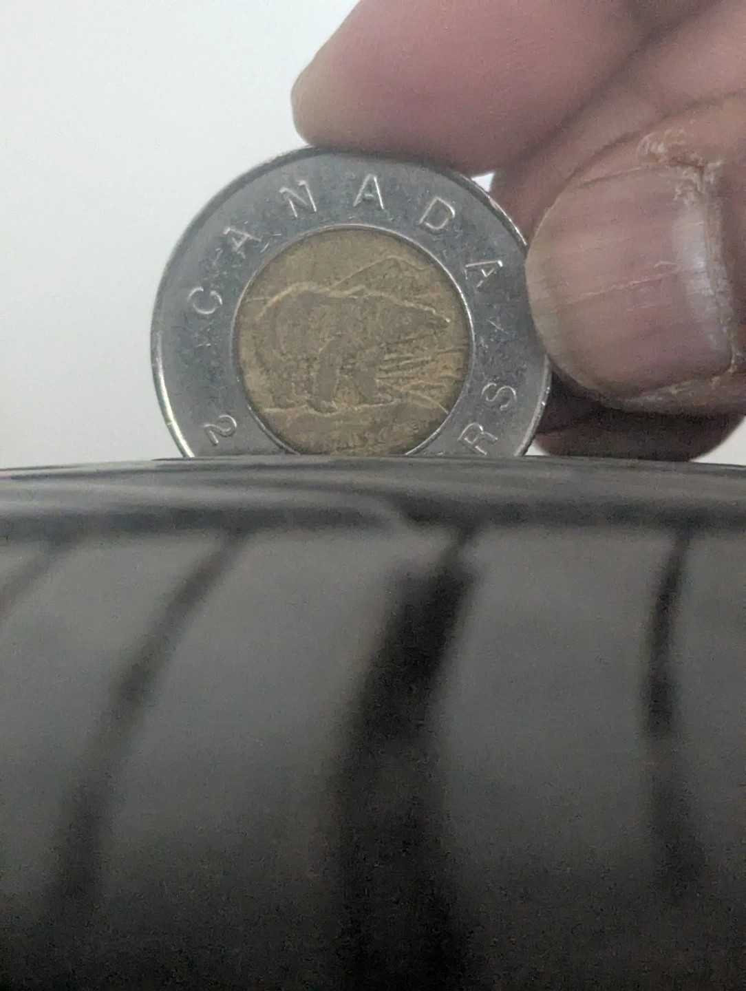 Selling a set of four Toyo Proxes all-season tires, size 205/60R16, originally equipped on a Mazda 3. These tires are used, but I've included a photo showing the tread depth with a toonie for scale.