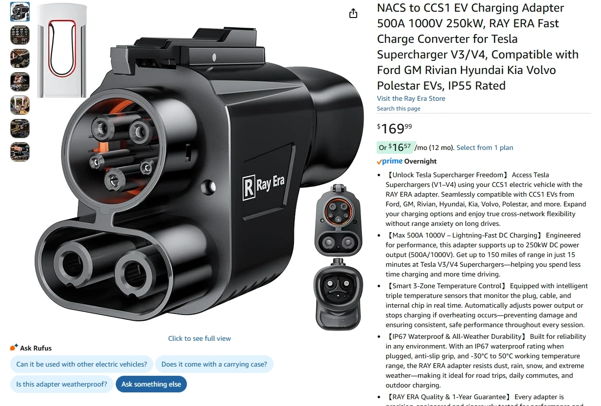 【Unlock Tesla Supercharger Freedom】 Access Tesla Superchargers (V1–V4) using your CCS1 electric vehicle with the RAY ERA adapter. Seamlessly compatible with CCS1 EVs from Ford, GM, Rivian, Hyundai, Kia, Volvo, Polestar, and more. Expand your charging options and enjoy true cross-network flexibility without range anxiety on long drives.