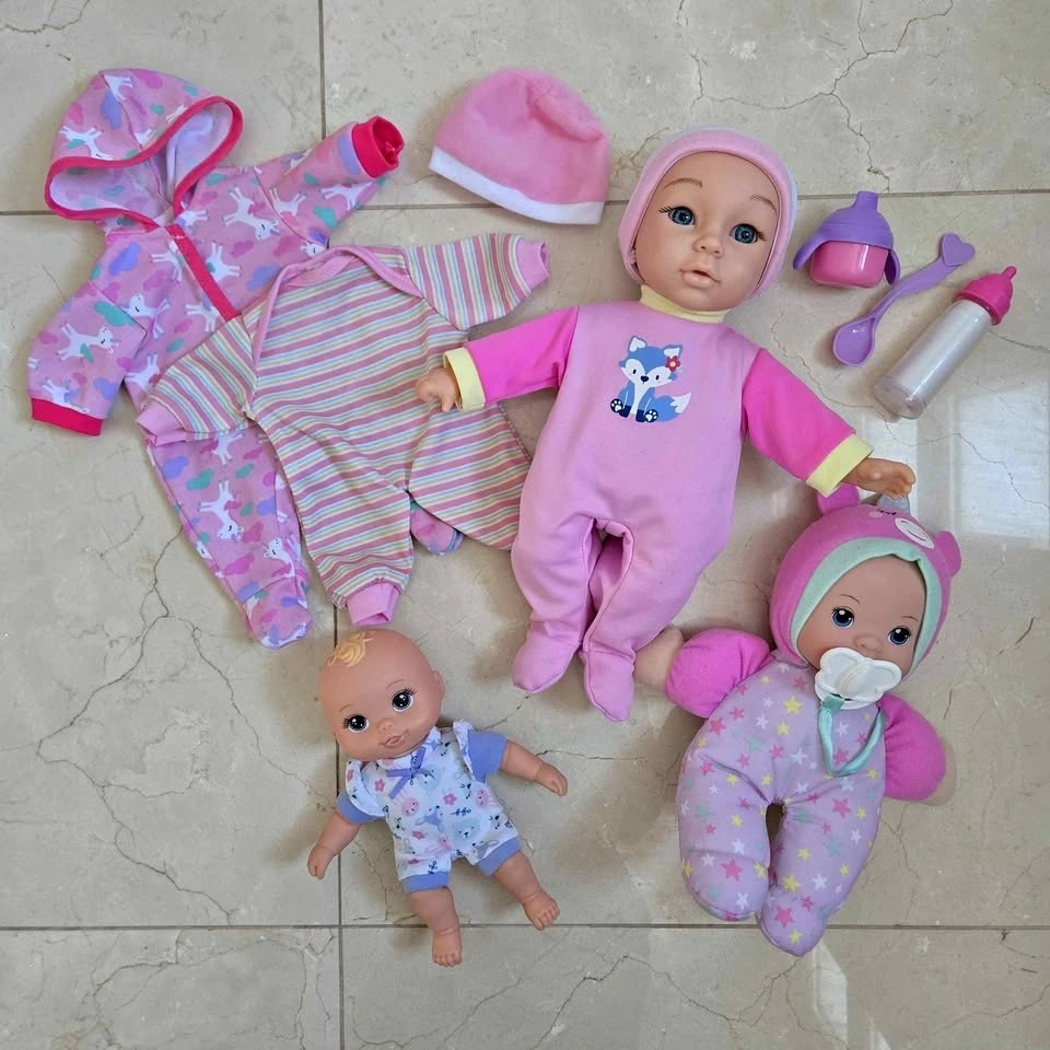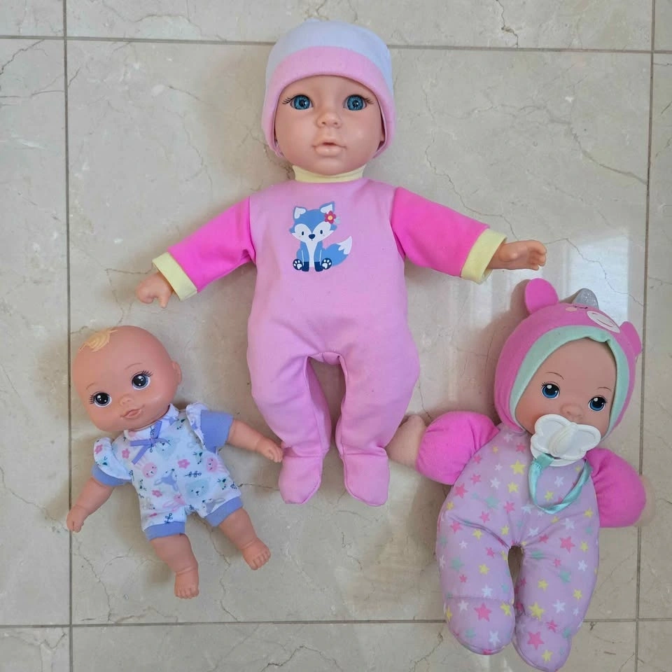 These perfectly cuddly and safe baby dolls will become their favorite new companion for pretend play, encouraging nurturing and developmental skills. All are in like-new perfect condition with minimal signs of use!