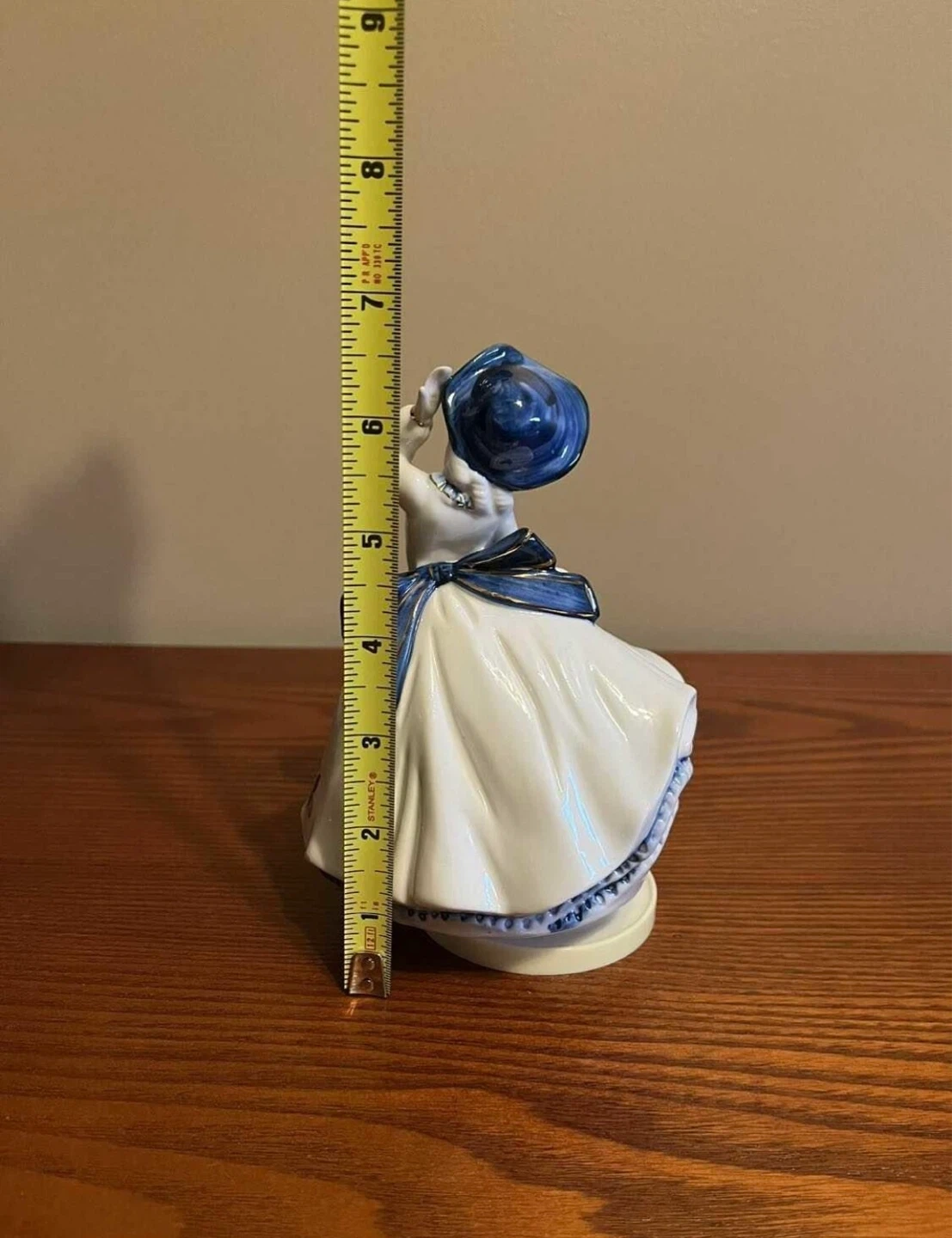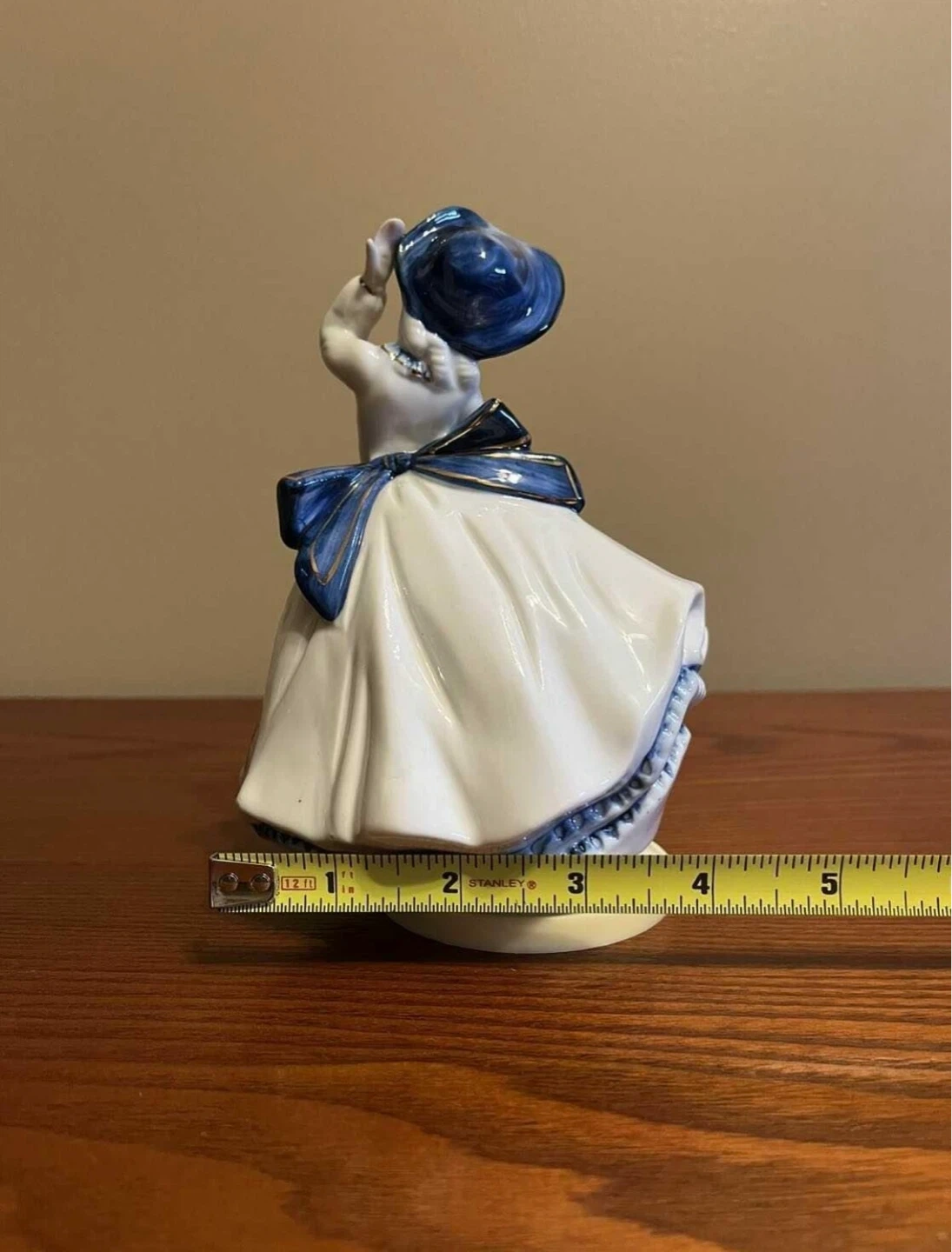 $30 Vintage Victorian Cobalt Blue and White musical porcelain doll figurine.