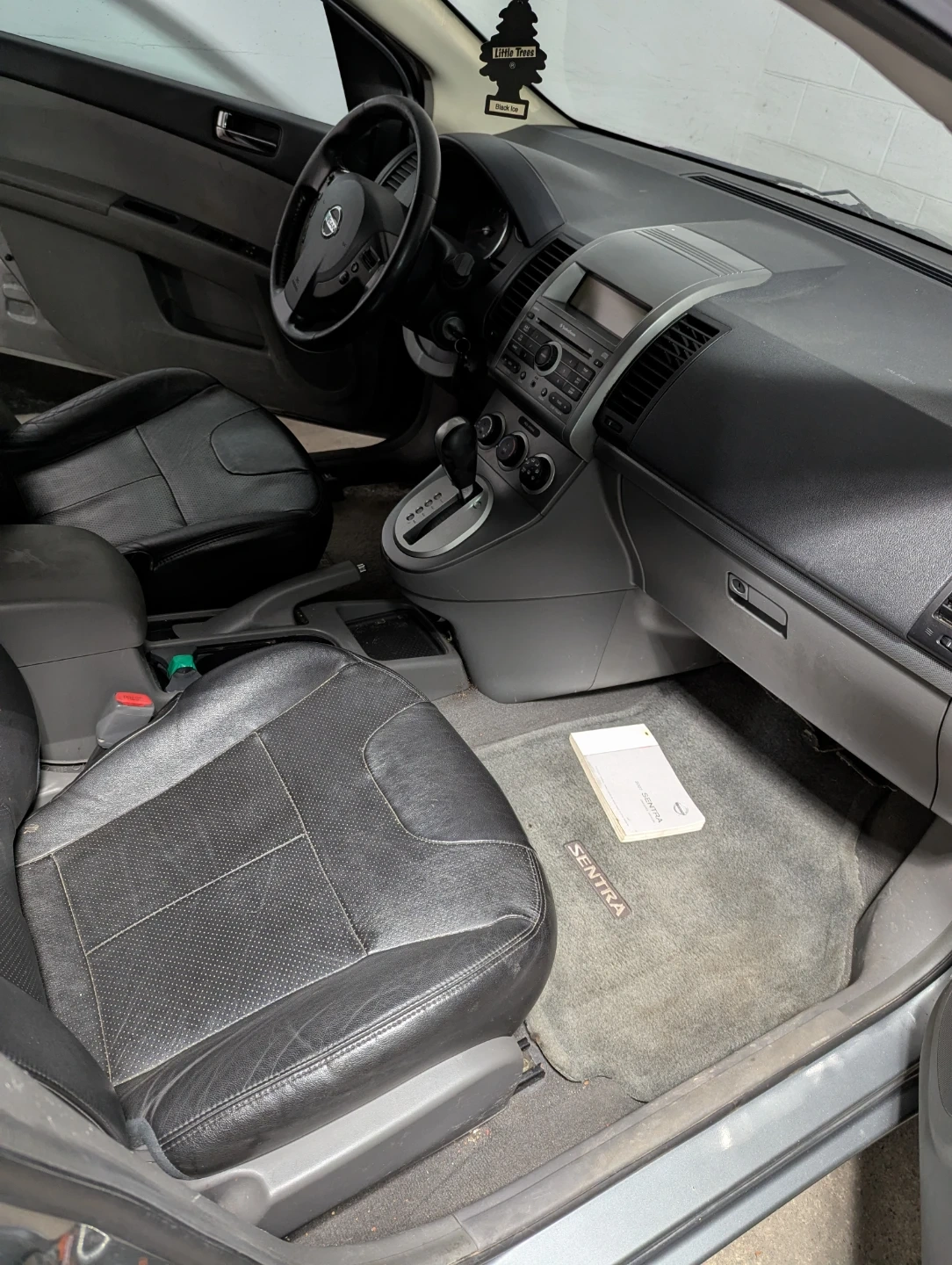 Grey Nissan Sentra 2.0L sedan with leather interior. Features a sunroof and comfortable seating. This car's compact size makes it easy to manoeuvre.New A/C and Heater system.
