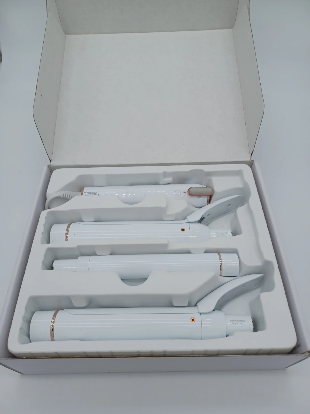 Selling a basically new T3 Interchangeable Curling Iron Set! It comes with the box and all the original components. This set is perfect for creating a variety of curls and waves with its interchangeable barrels. It has one very small chip on one barrel but does not effect use or pull on any hair one bit. Only selling because I don't use it!