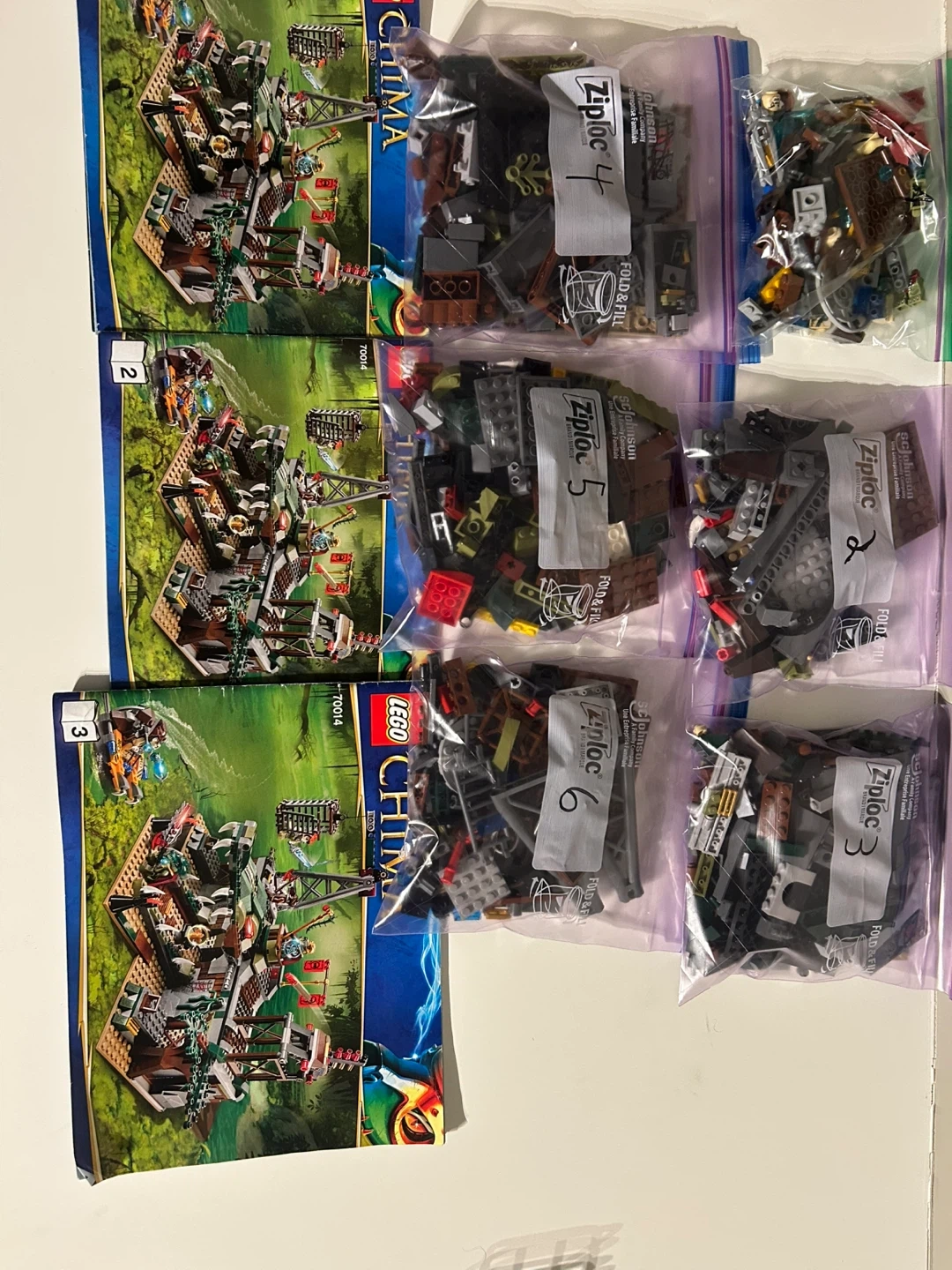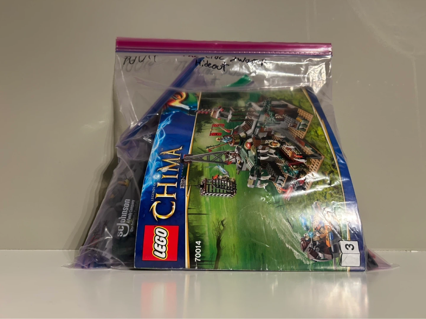 LEGO Chima The Croc Swamp Hideout Set 70014 Includes all of the minifigures and is only missing one piece. The pieces are in various condition and have been hand counted and resealed into there numbered bags. The price is negotiable and is available for pickup or public meet up.