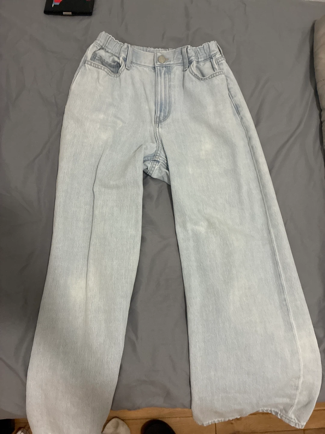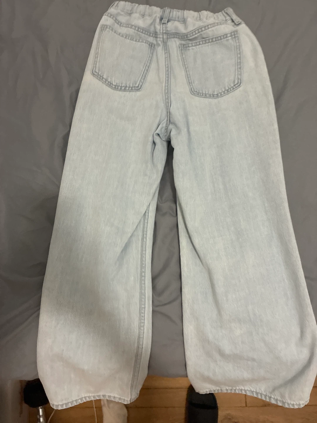 These light wash denim jeans have a comfortable wide leg fit. They feature a relaxed cut with an elastic waistband for easy wear. Casual and stylish for everyday outfitting!
