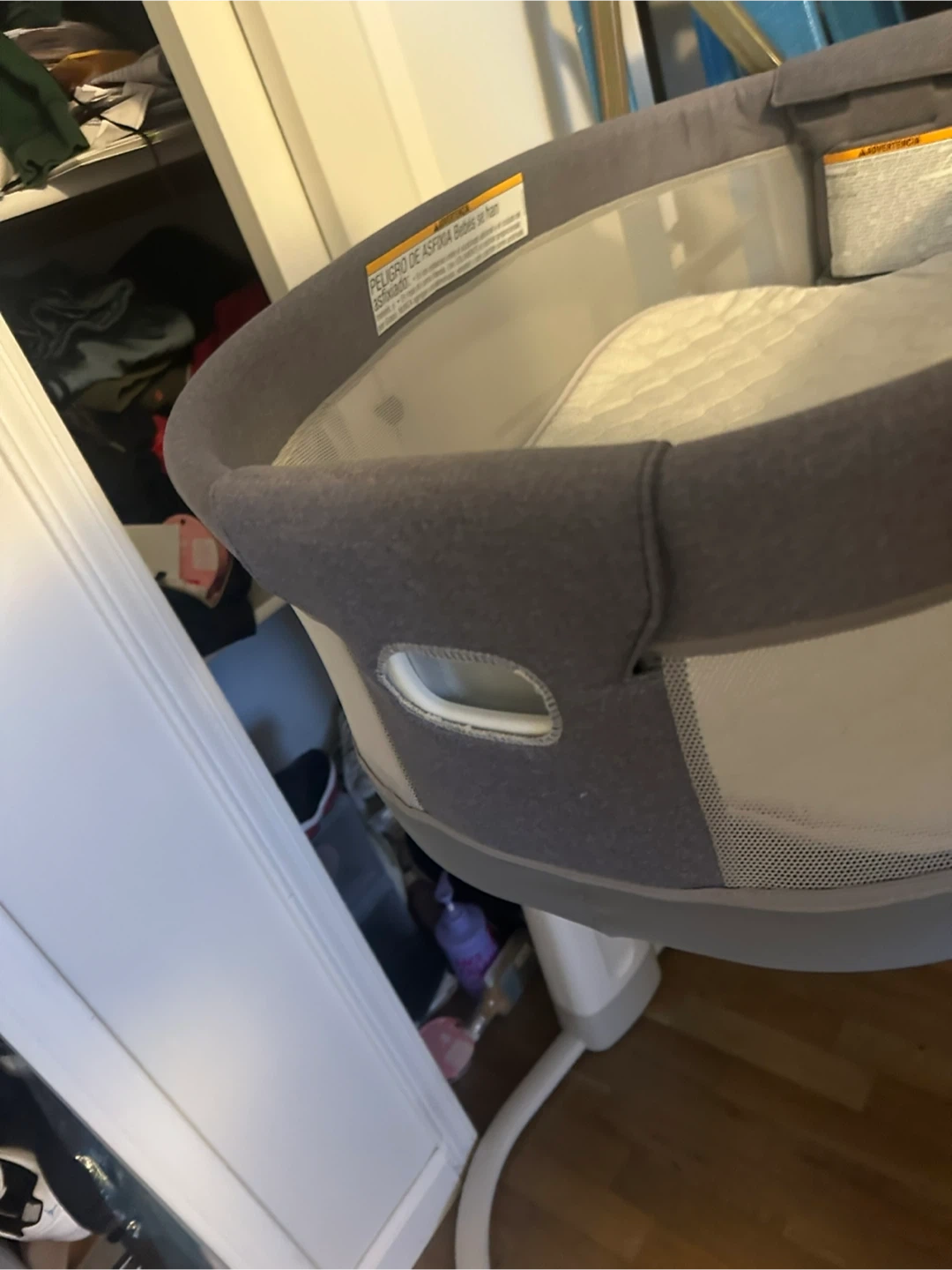This Graco Dream Center bassinet is designed for your baby's comfort and convenience. It features a breathable mesh for airflow and a comfortable mattress. Its adjustable height and rocking function make it easy to soothe your little one. Perfect for keeping your baby close by.