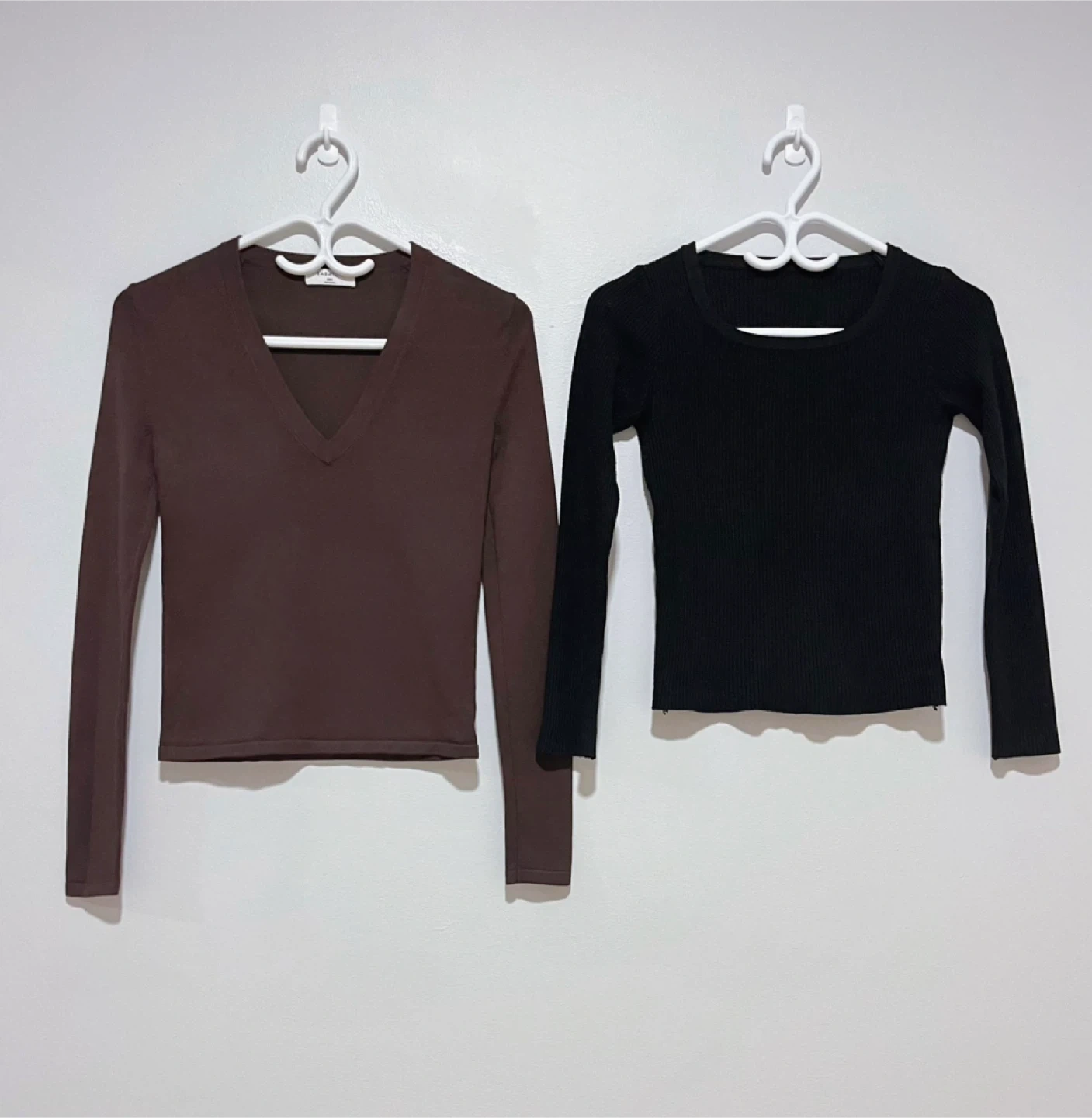 Babaton V-Neck & Zara Black Ribbed Sweaters