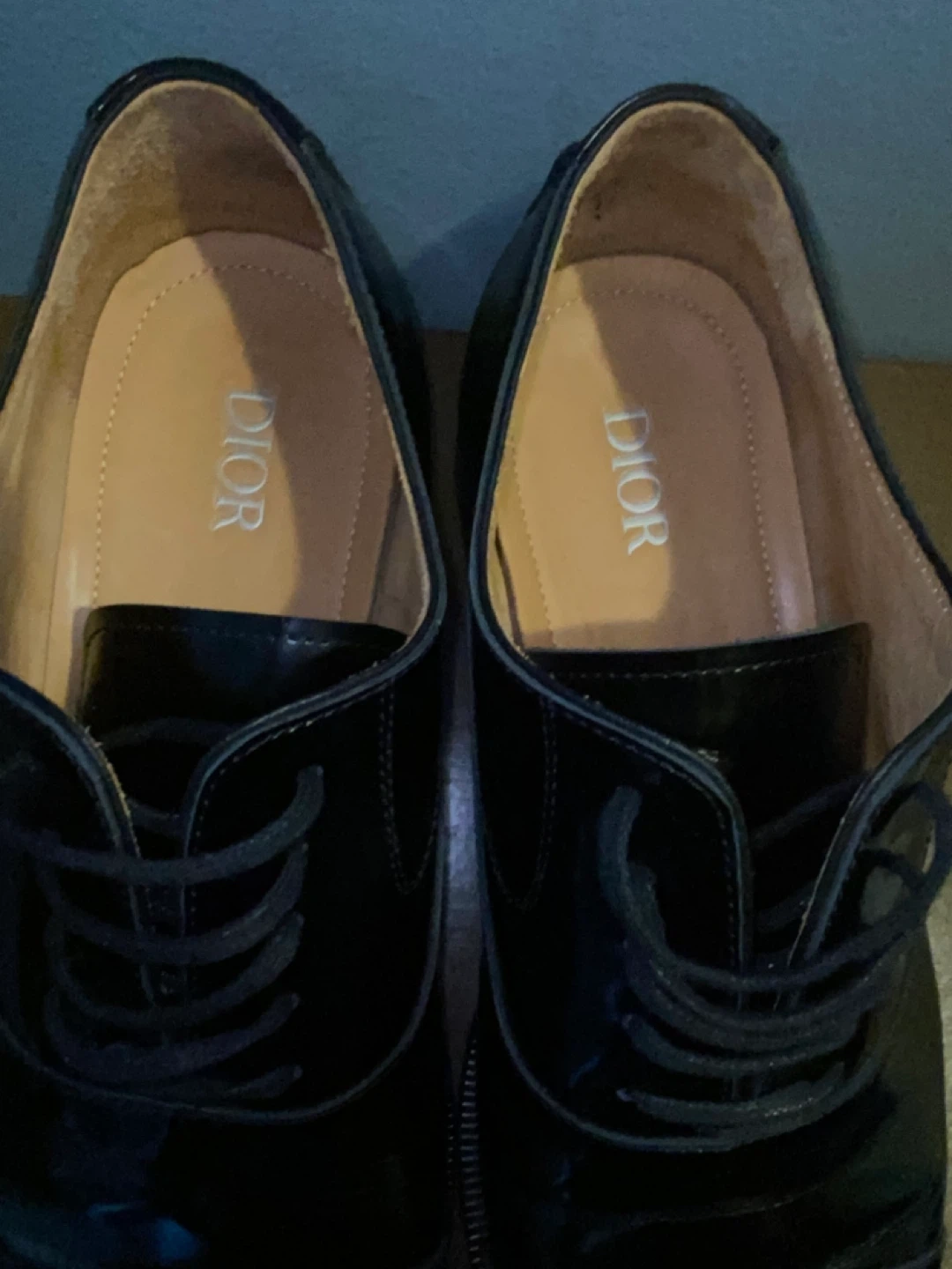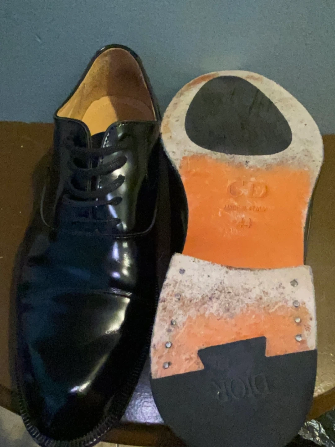 These are DIOR black patent leather Oxford dress shoes. They're made of shiny patent leather. These shoes are great for formal events. Size 11 Mens