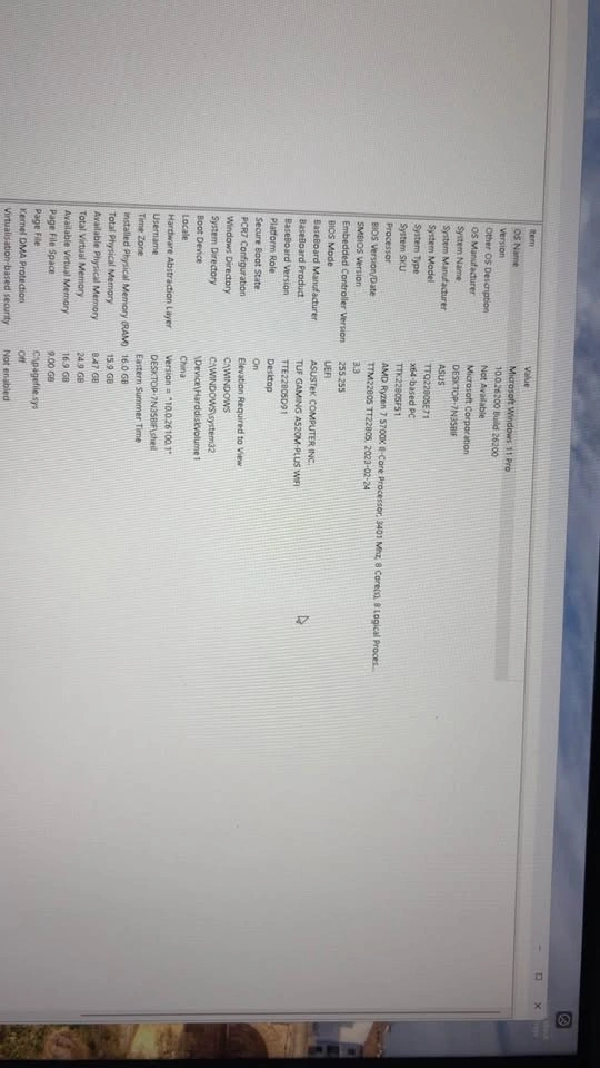 • Motherboard: ASUS TUF Gaming A520M-PLUS WiFi