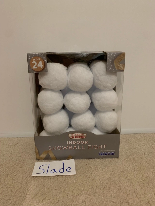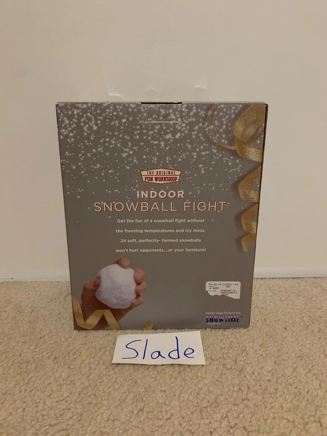 Buy & SellIndoor Snowball FightIndoor Snowball Fight$14Brand new. No trades. Let me know if you're interested!WHERE TO MEETCheck LocationView MapSELLERSlade WilsonMarkville Mall150 reviews0 chats·0 favorites·1 viewsSEND CHAT TO SELLERHi Slade Wilson! I’m interested in your listing.Hi Slade Wilson! I’m interested in your listing.Get the Karrot app to chatSign In to chat