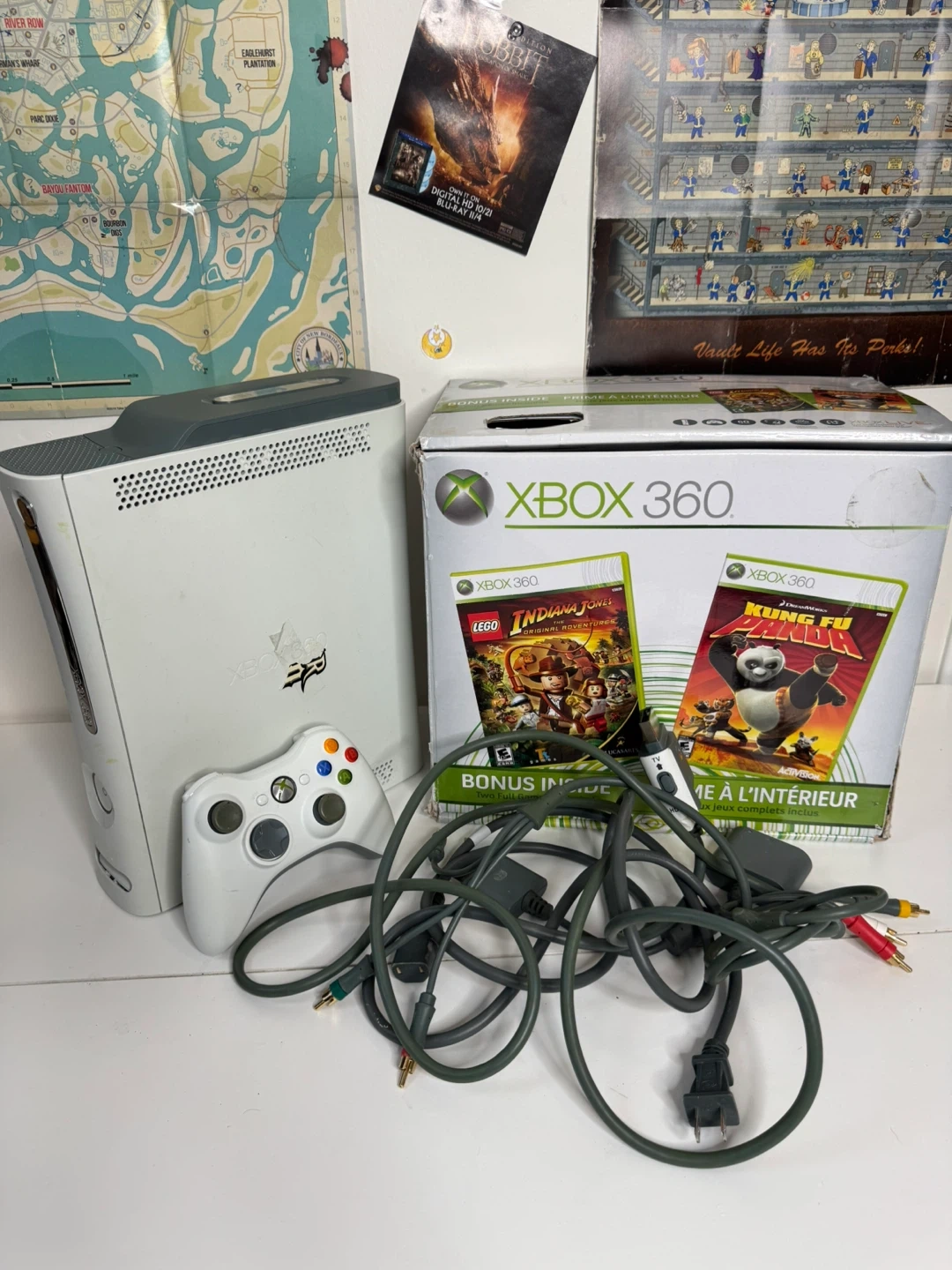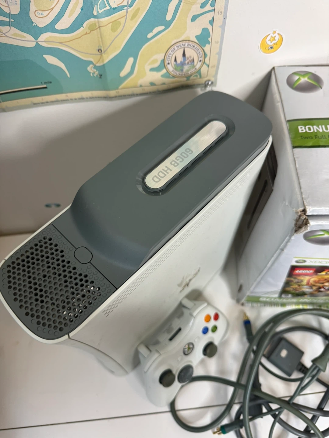 90Xbox 360 - 60gb Cables controller comes without cover No brick, bring yours to test.