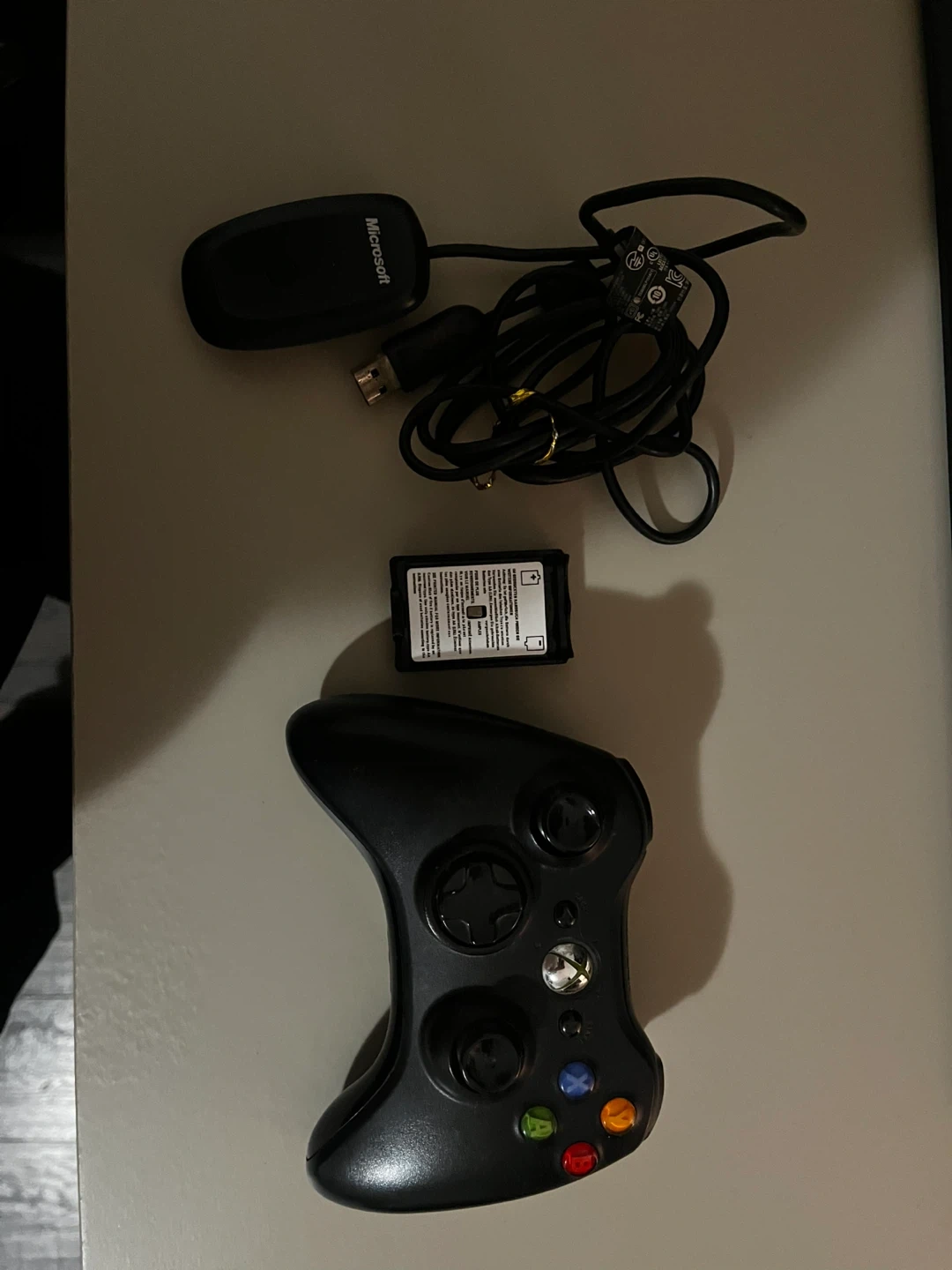 79Selling a black wireless controller for the Xbox 360. Includes the battery pack and a Microsoft wireless gaming receiver.