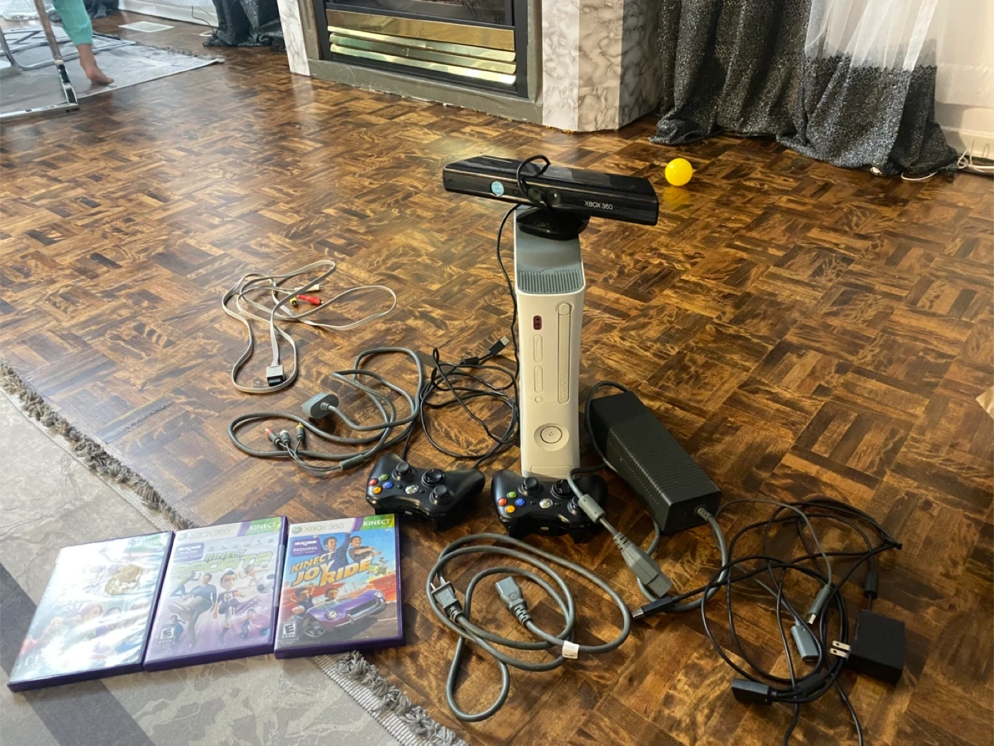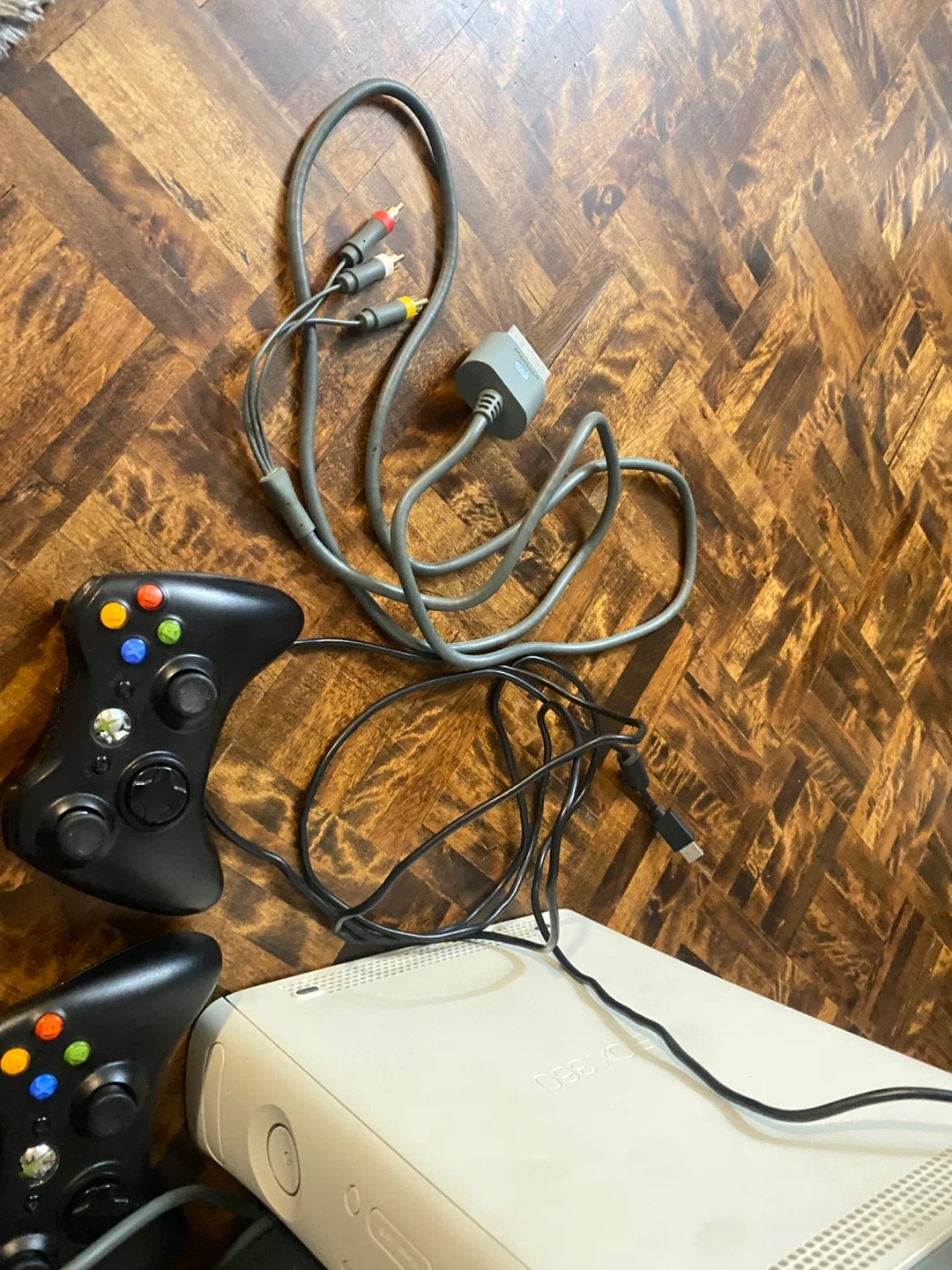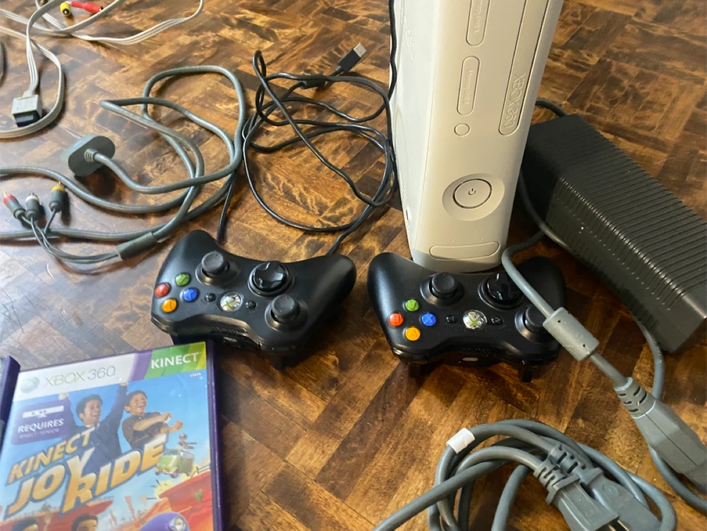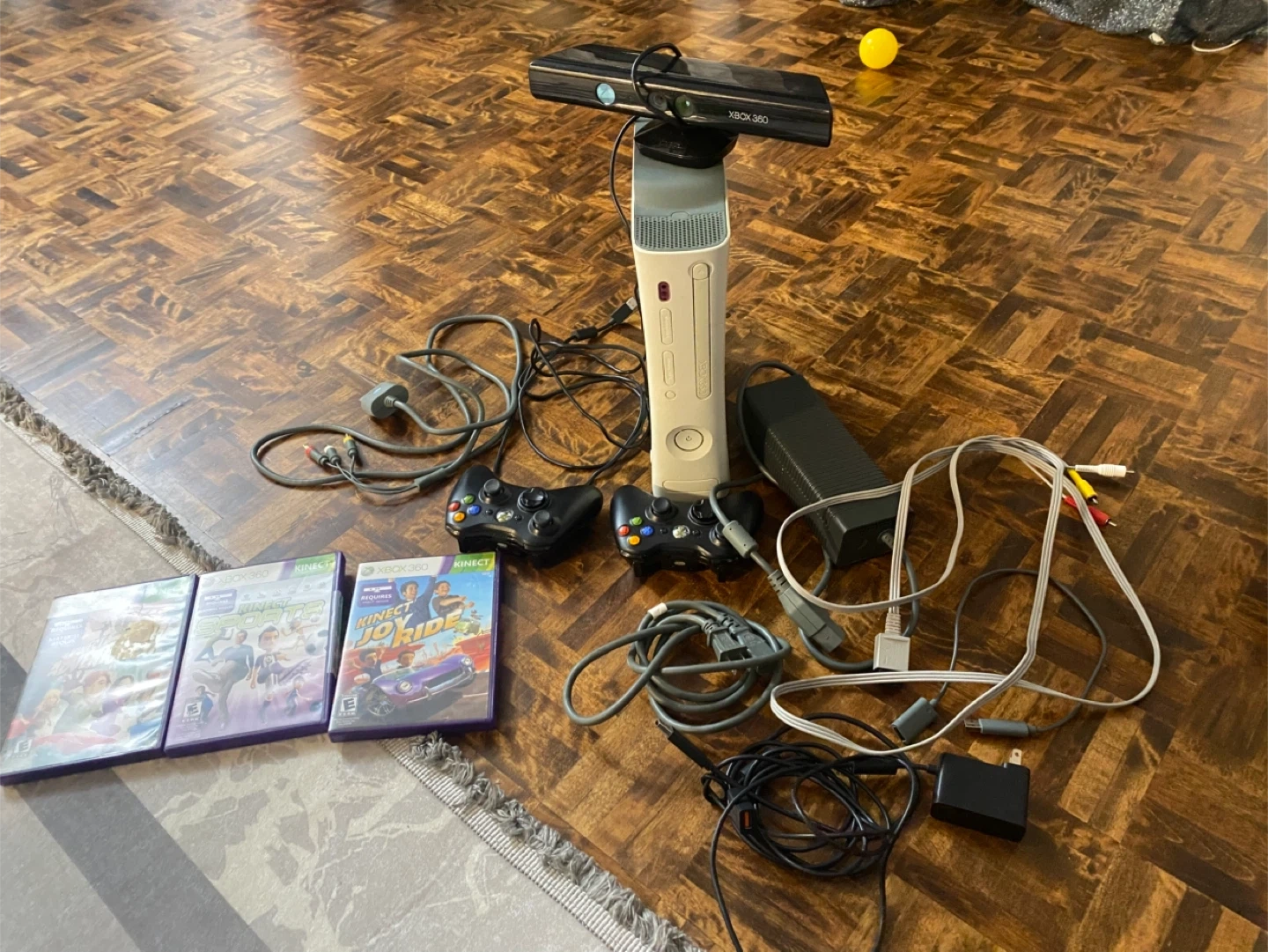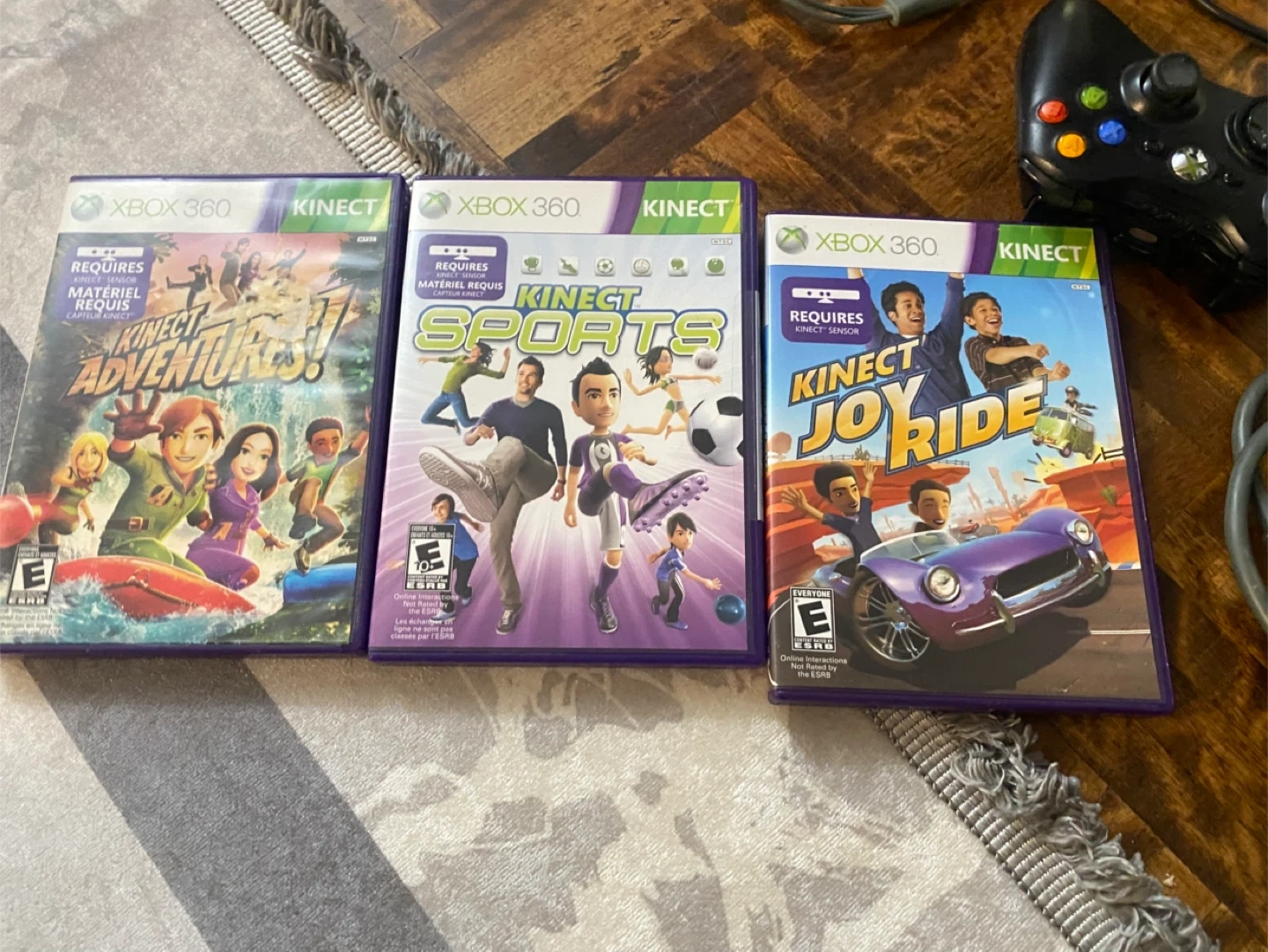 Selling an Xbox 360 console with two controllers and a Kinect sensor! Includes three Kinect games: Kinect Adventures, Kinect Sports, and Kinect Joy Ride. Perfect for some family fun!