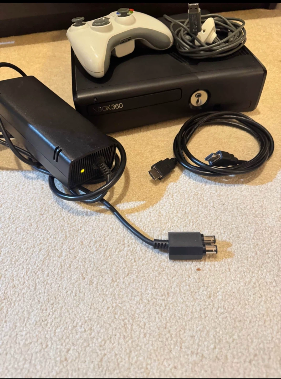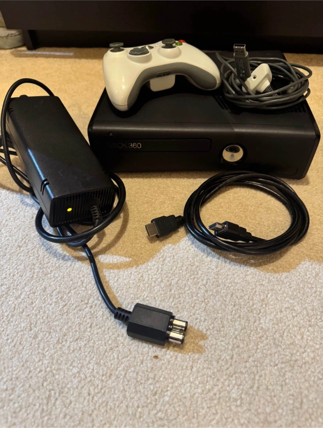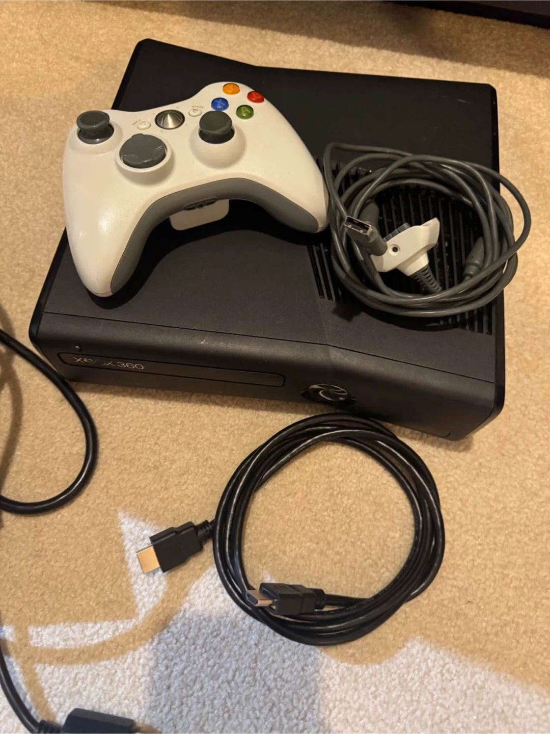 Selling a used Xbox 360 console. It comes with a controller, power adapter, and HDMI cable. Perfect for some retro gaming!