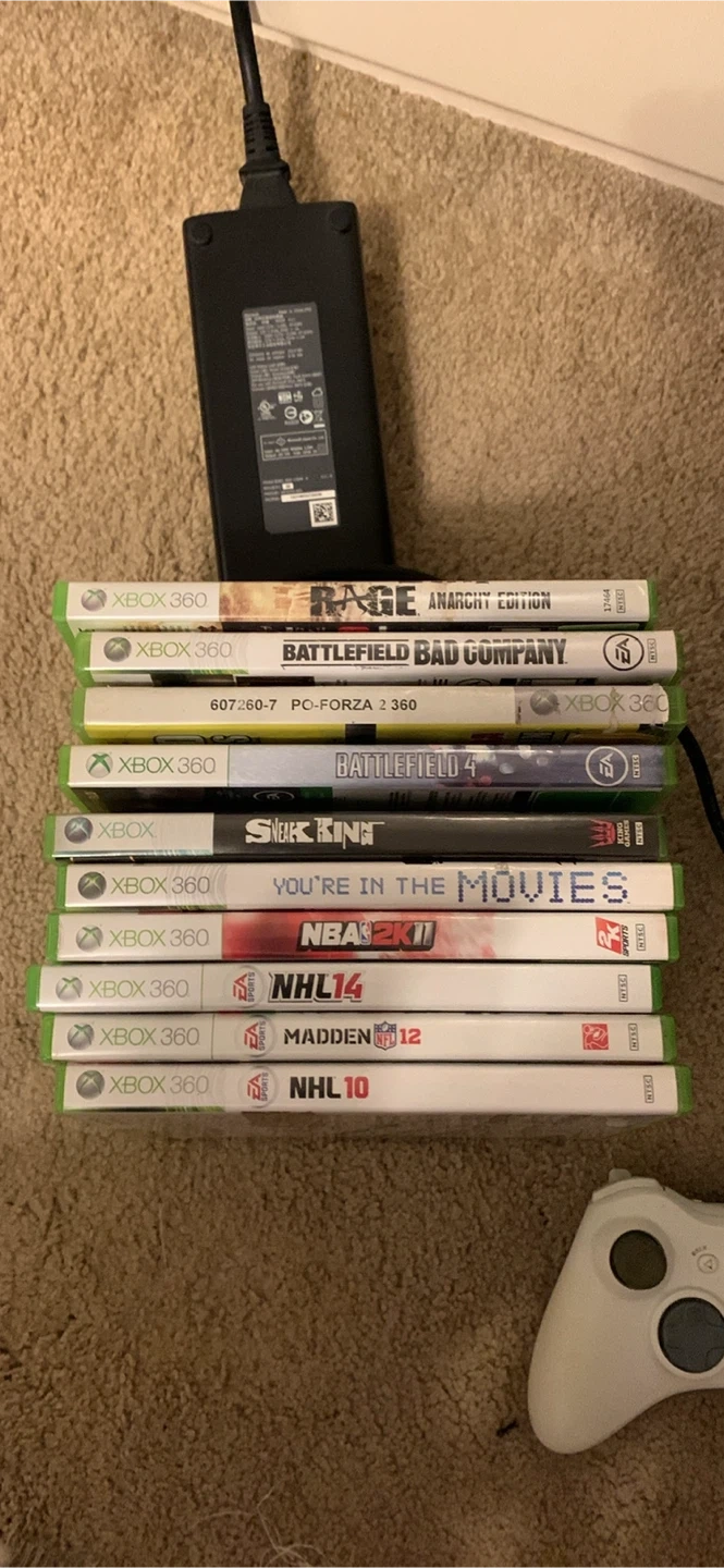 Selling a bundle of Xbox 360 games! Titles include Rage Anarchy Edition, Battlefield Bad Company, Forza 2, Battlefield 4, Sneak King, You're in the Movies, NBA 2K11, NHL 14, Madden 12, and NHL 10. Great for expanding your collection or reliving some classics