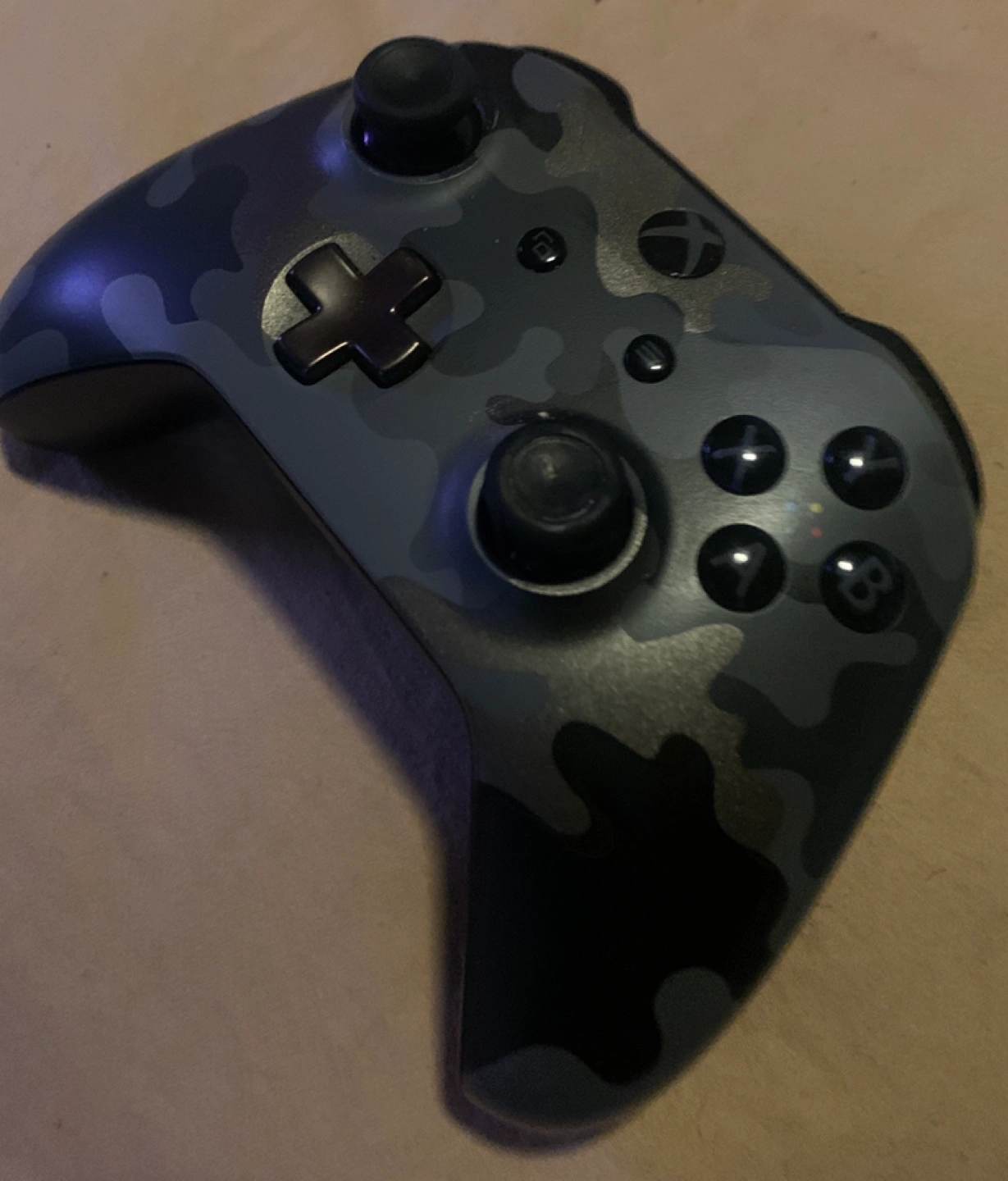 Xbox One controller custom built with camo design. Includes all buttons and analog sticks. No stick drift, missing back for batteries also open to trades!