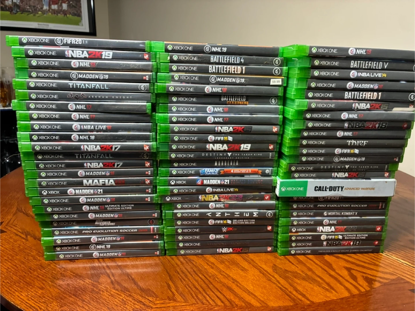 17Selling a collection of Xbox One games! Titles include NHL, NBA2K, Battlefield, Madden, FIFA, Call of Duty, and more. Great for expanding your game library!