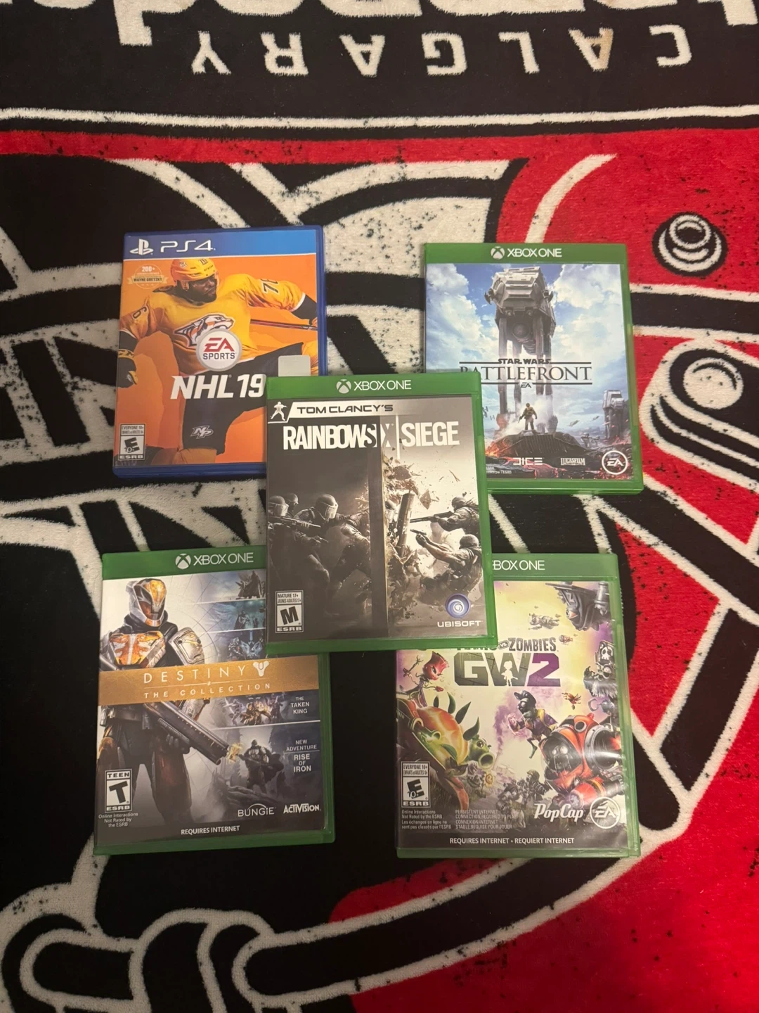 54Selling a bundle of video games for Xbox One and PS4! All for 5$ - NHL 19 (PS4) - Tom Clancy's Rainbow Six Siege (Xbox One) - Star Wars Battlefront (Xbox One) - Destiny The Collection (Xbox One) - Plants vs Zombies Garden Warfare 2 (Xbox One)