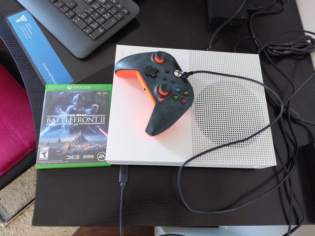 10Rarely played like new Xbox One S 1TB, comes with controller all cables, all in perfect condition. Many games: - Star Wars Battlefront II - Resident Evil: Revelations 2 - Call of Duty: Warzone - Call of Duty: The Hunting - Rocket League - Asphalt Legends Unite - Hitman 3 - The Sims 4 - Fall Guys - Roblox - Trackmania - World of Tanks - world of warships - War Thunder - Fortnite - APEX. May deliver to you if not far. No shipping no trade.