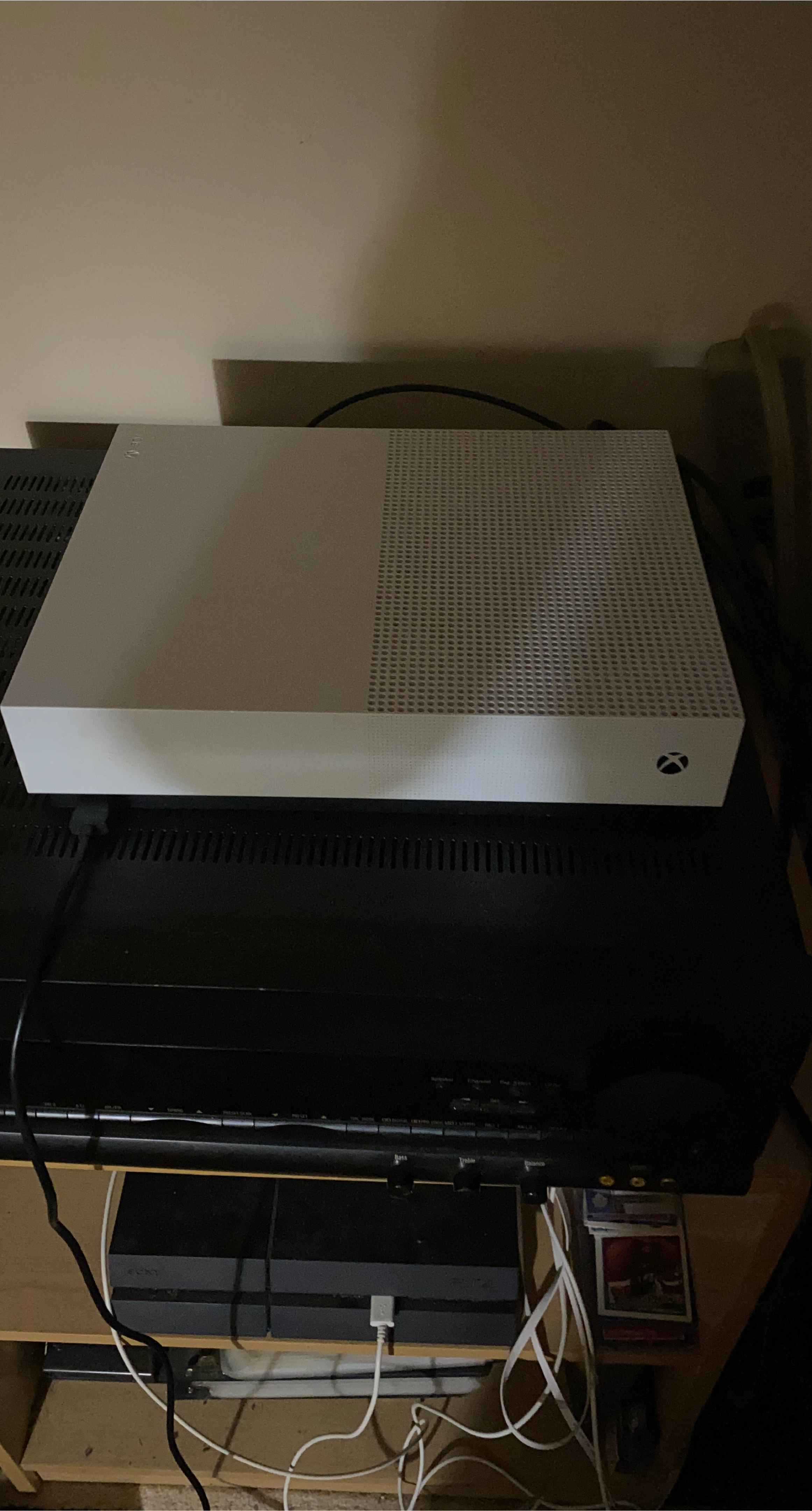 12Selling a white Xbox One S console. It's in good condition and ready for a new home! Perfect for gaming and streaming your favourite shows. What’s in picture is what you get. No controllers just wires to hook up to use