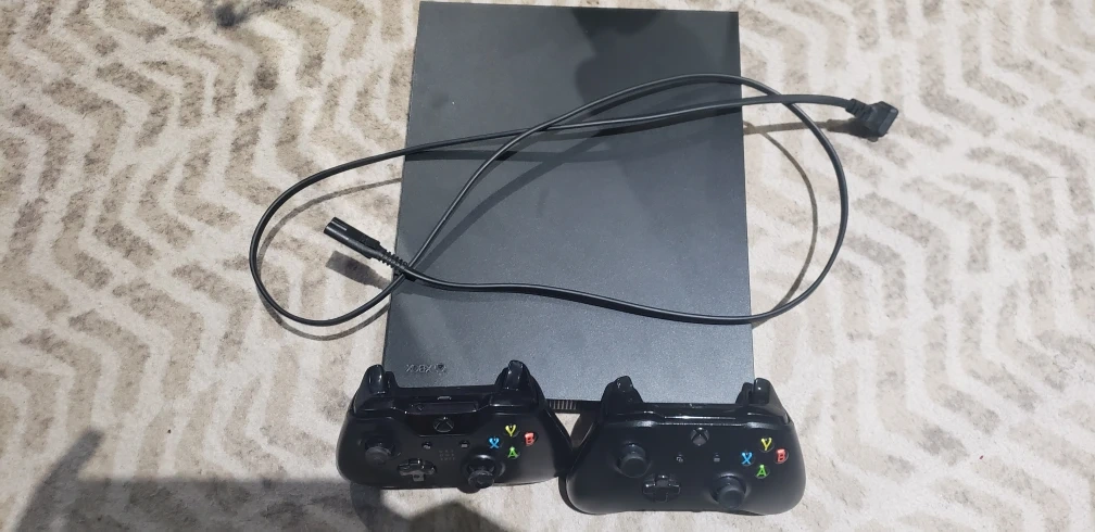 Selling an Xbox One X, console is not in functioning condition, repair needed. It comes with two controllers and a power cable. Repair: Does not show video but turns on. Controllers work perfectly.