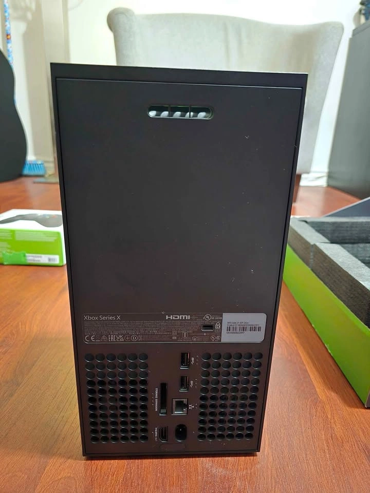 65Almost New and no scratches or dents. Used few times. Everything worked perfectly. Comes with 5 controller. 2 rechargeable batteries. 2 of the controller has only left side joystick issue. Original power cable and HDMI cable . Comes with box .