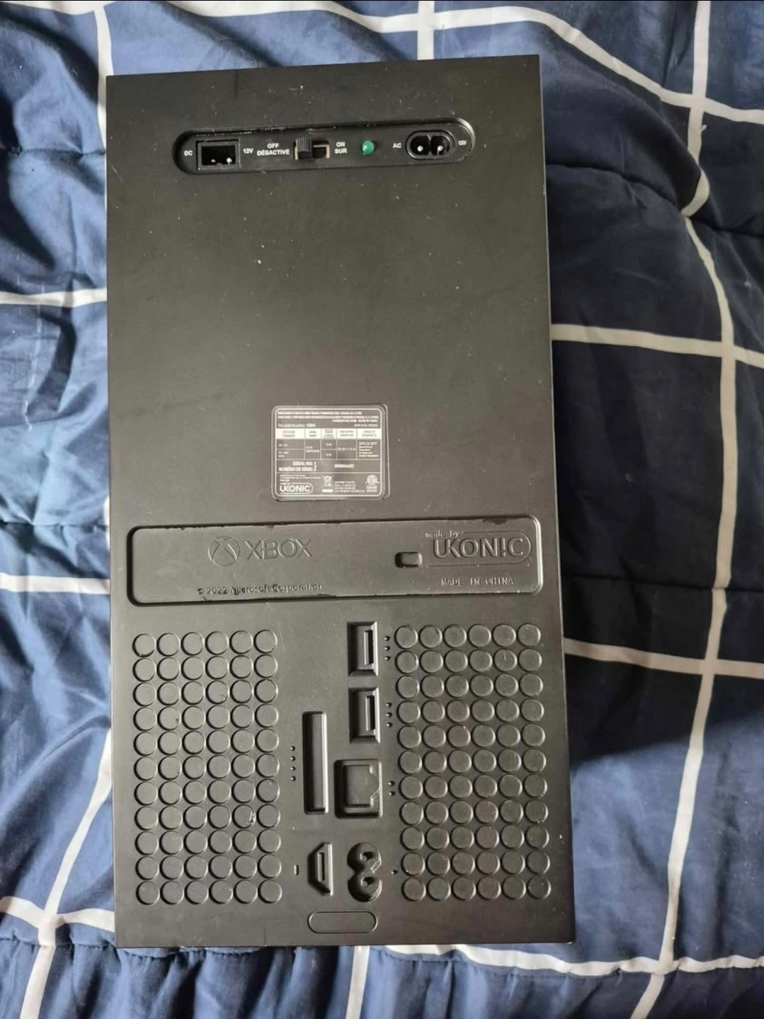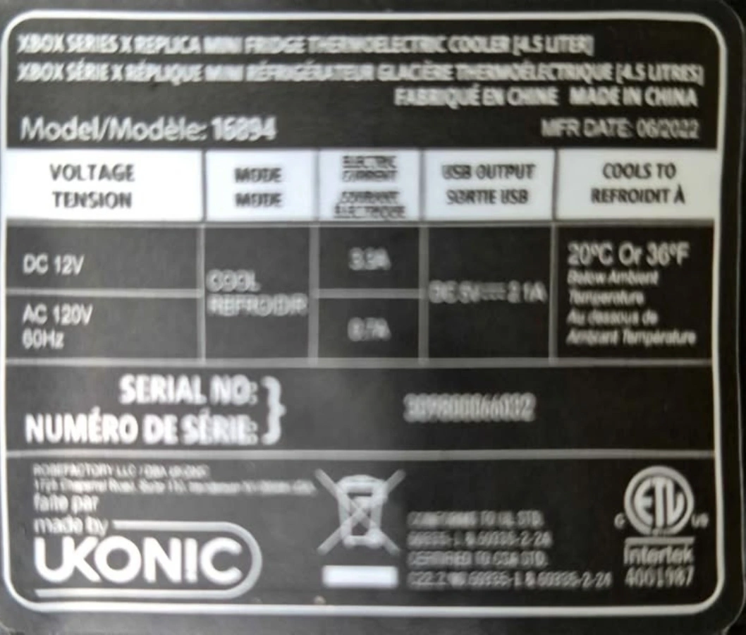 Selling an Xbox Series X Replica Mini Fridge by Ukonic! It's a thermoelectric cooler with a 4.5-liter capacity. It can cool to 20°C or 36°F below ambient temperature. Made in China.