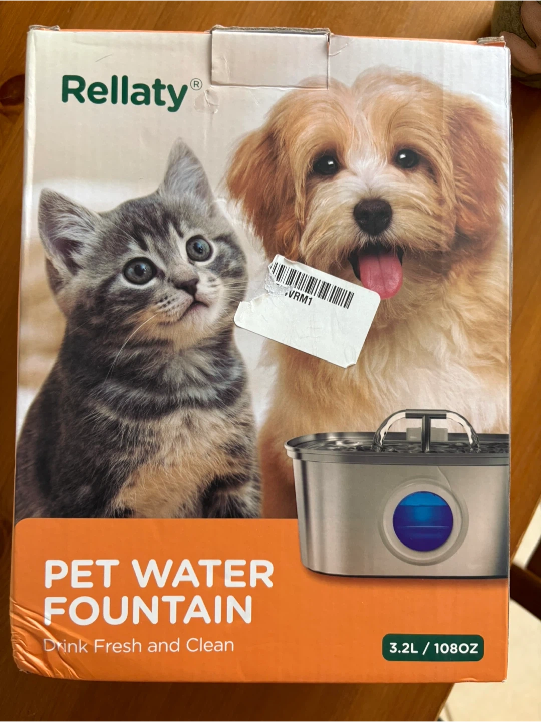 This is a Rellaty pet water fountain. It holds 3.2L or 108oz of water. It's designed to keep your pet's water fresh and clean.