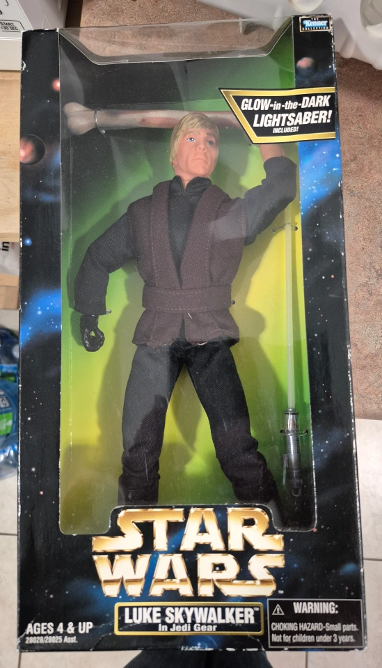 Collectible Luke Skywalker action figure. Glow-in-the-dark lightsaber. Fully poseable figure. Authentically styled outfit and accessories. In Jedi gear.
