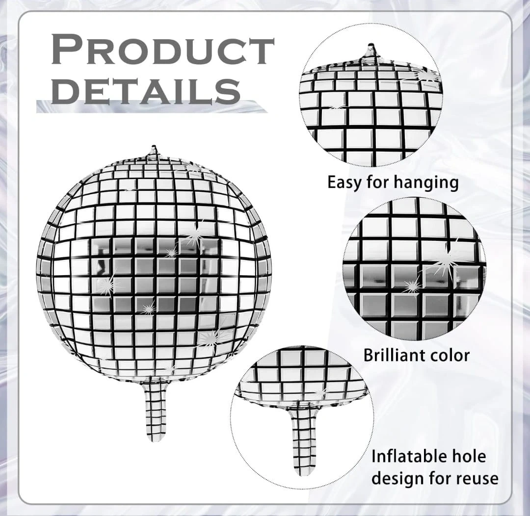 Each set includes 15 balloons, 22-inch size, in a 4D sphere shape, giving a shiny disco look—perfect for New Year’s Eve parties, birthdays, weddings, and photo backdrops ✨