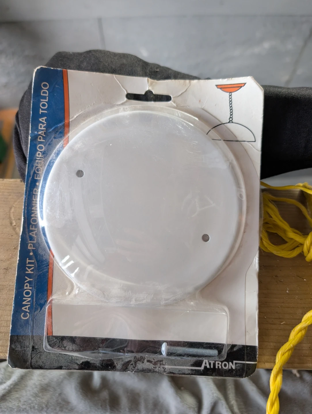 This Atron canopy kit is designed for mounting light fixtures. It includes the canopy cover and mounting hardware. This kit is suitable for various ceiling light installations.