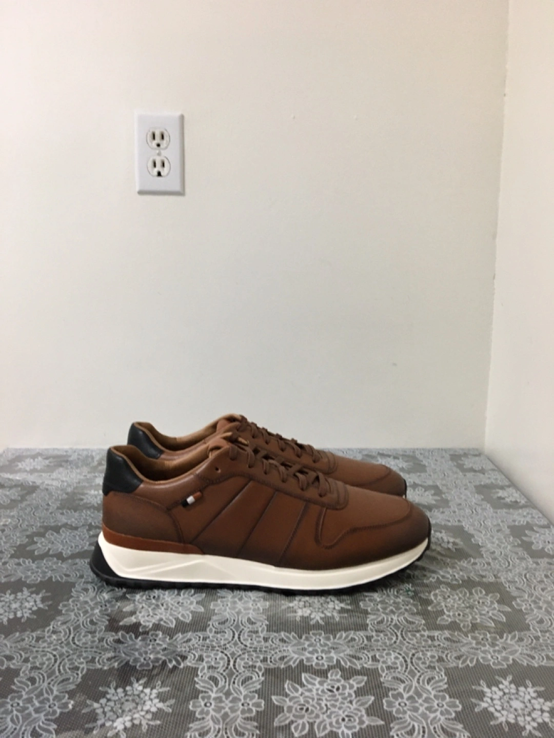 Stylish brown leather sneakers from Allen Edmonds. They feature a comfortable lace-up closure and a durable rubber sole. Perfect for casual wear or a more dressed-up look. pick up at steeles and Bathurst cash only