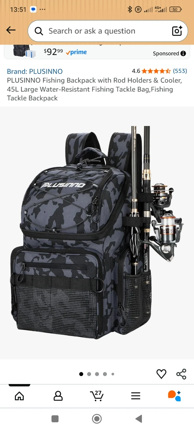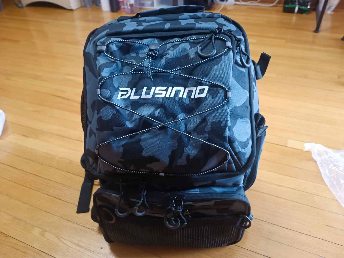 This PLUSINNO fishing backpack has a 45L capacity and includes rod holders and a cooler. It's water-resistant and designed for carrying fishing tackle and gear. Multiple compartments help organize your essentials.Brand new, never used.