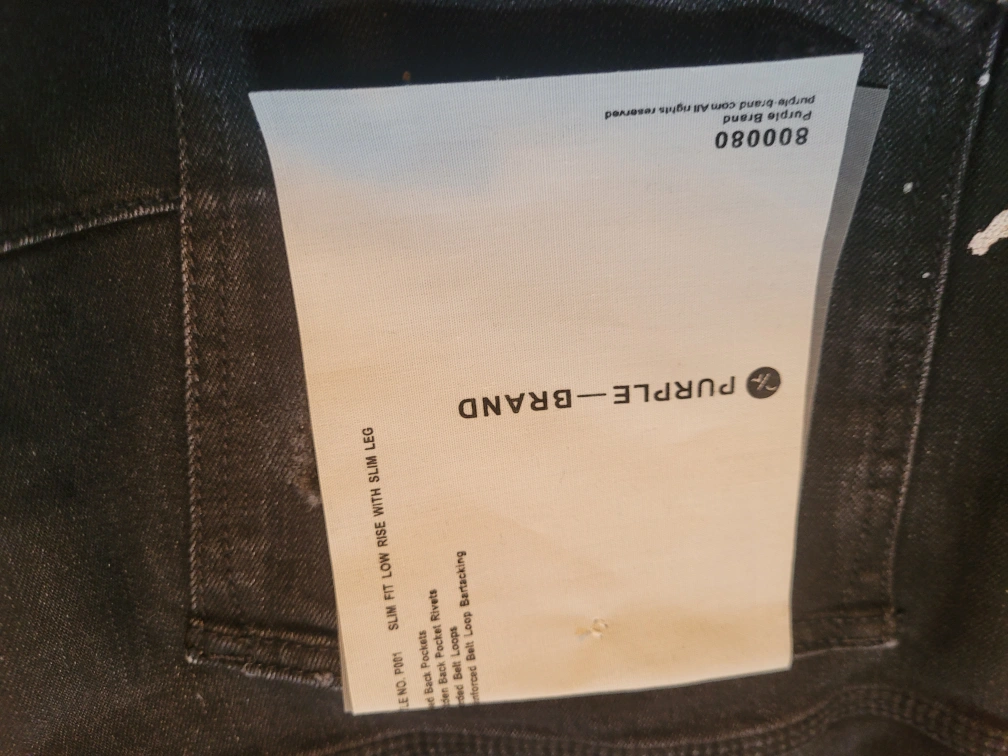 Authentic Men's Purple Brand distressed black jeans bought off the purple website for $275 plus tax . Size 36. Slim fit with slim leg. Paint splatters. New with tags.